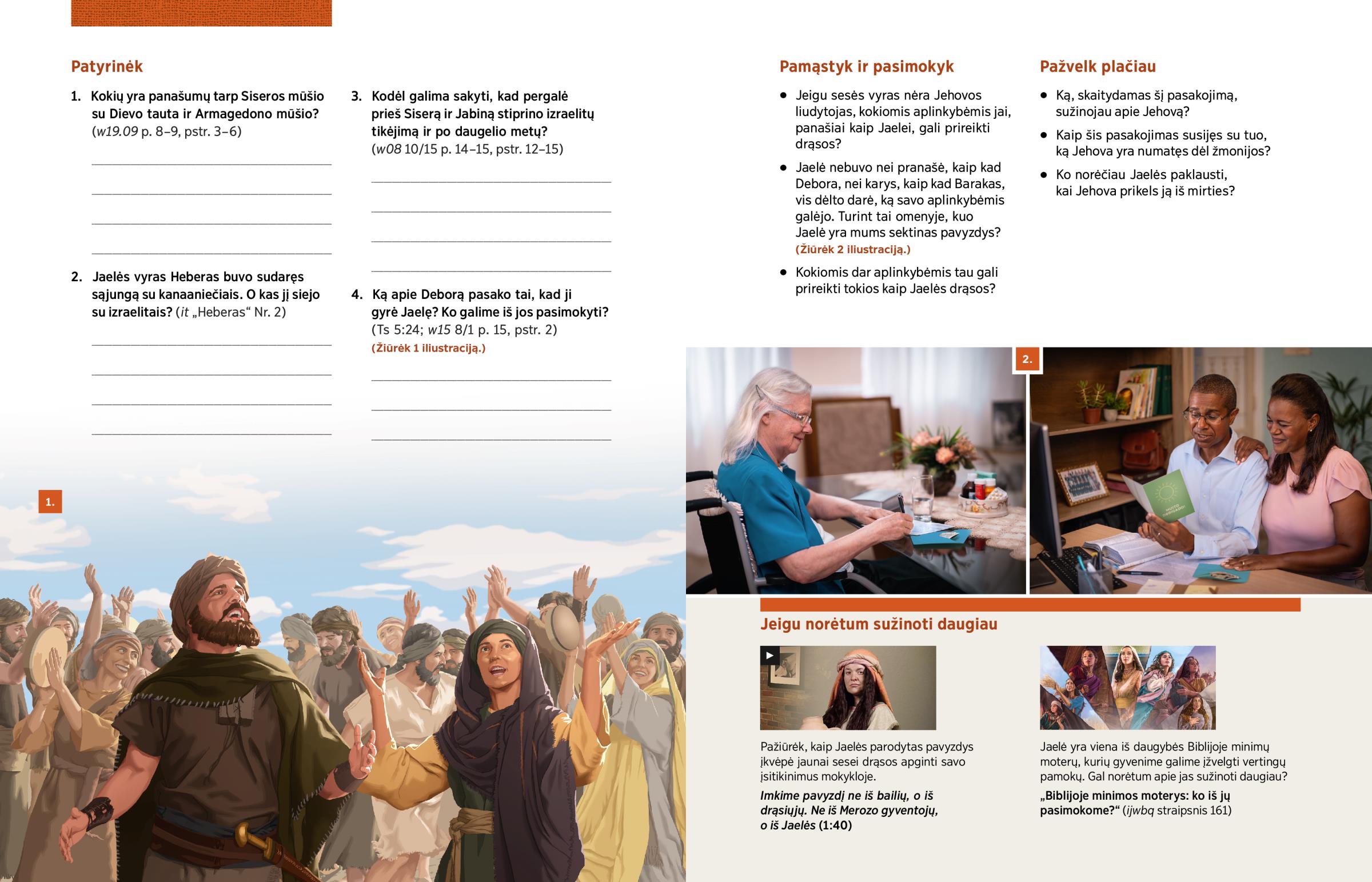 Jaelė nebuvo nei pranašė, kaip kad Debora, nei karys, kaip kad Barakas, vis dėlto darė, ką savo aplinkybėmis galėjo. Turint tai omenyje, kuo Jaelė yra mums sektinas pavyzdys? (Žiūrėk 2 iliustraciją.)