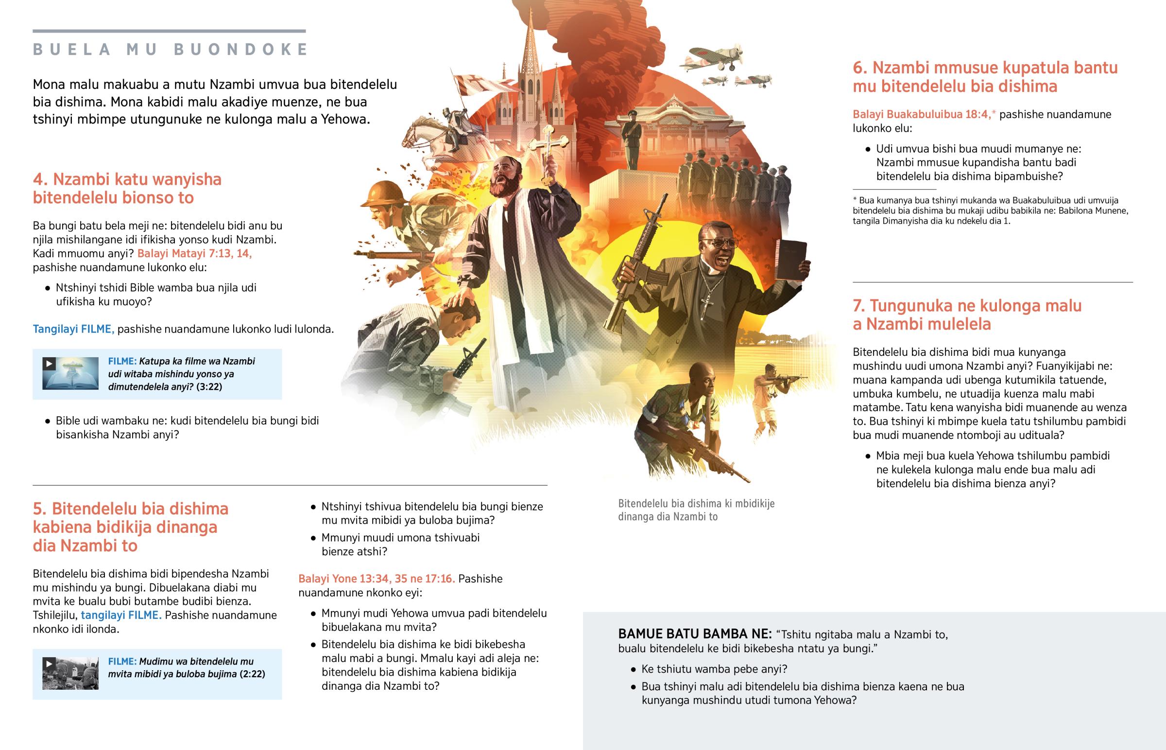 Bitendelelu bia dishima bidi bipendesha Nzambi mu mishindu ya bungi. Dibuelakana diabi mu mvita ke bualu bubi butambe budibi bienza. Tshilejilu, tangilayi FILME. Pashishe nuandamune nkonko idi ilonda.