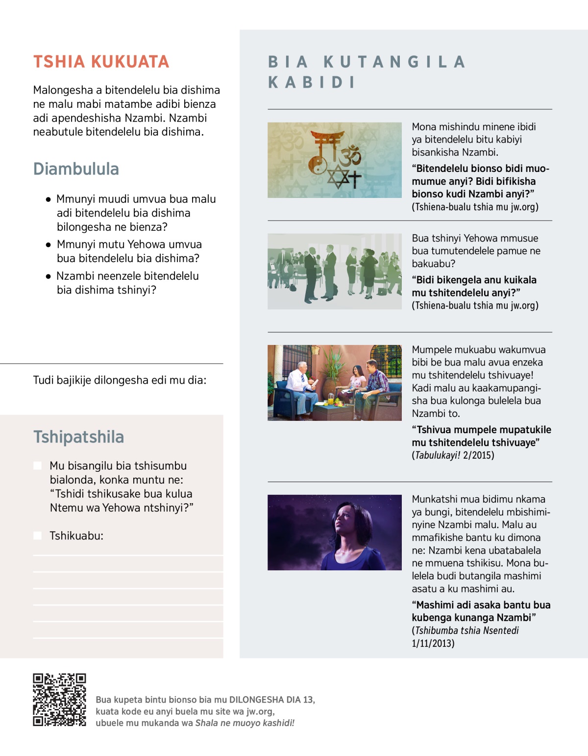 “Bidi bikengela anu kuikala mu tshitendelelu anyi?” (Tshiena-bualu tshia mu jw.org)