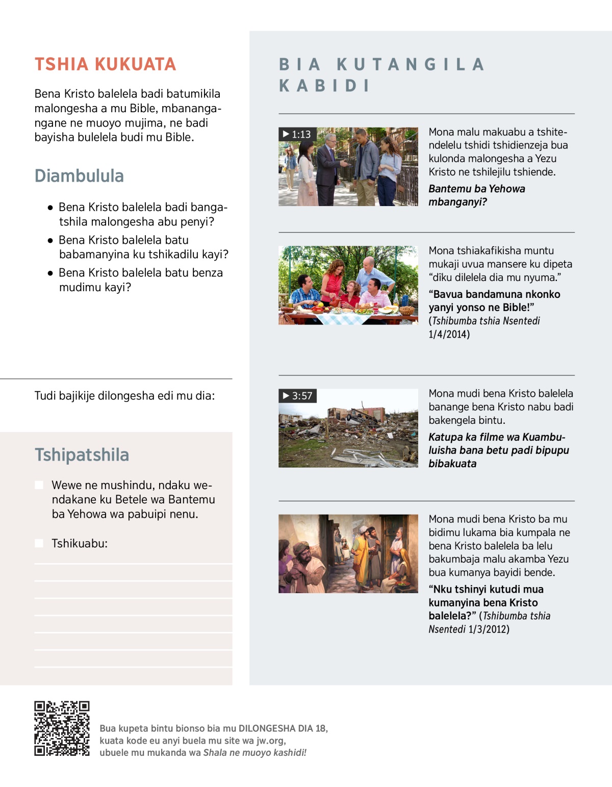 “Nku tshinyi kutudi mua kumanyina bena Kristo balelela?” (Tshibumba tshia Nsentedi 1/3/2012)