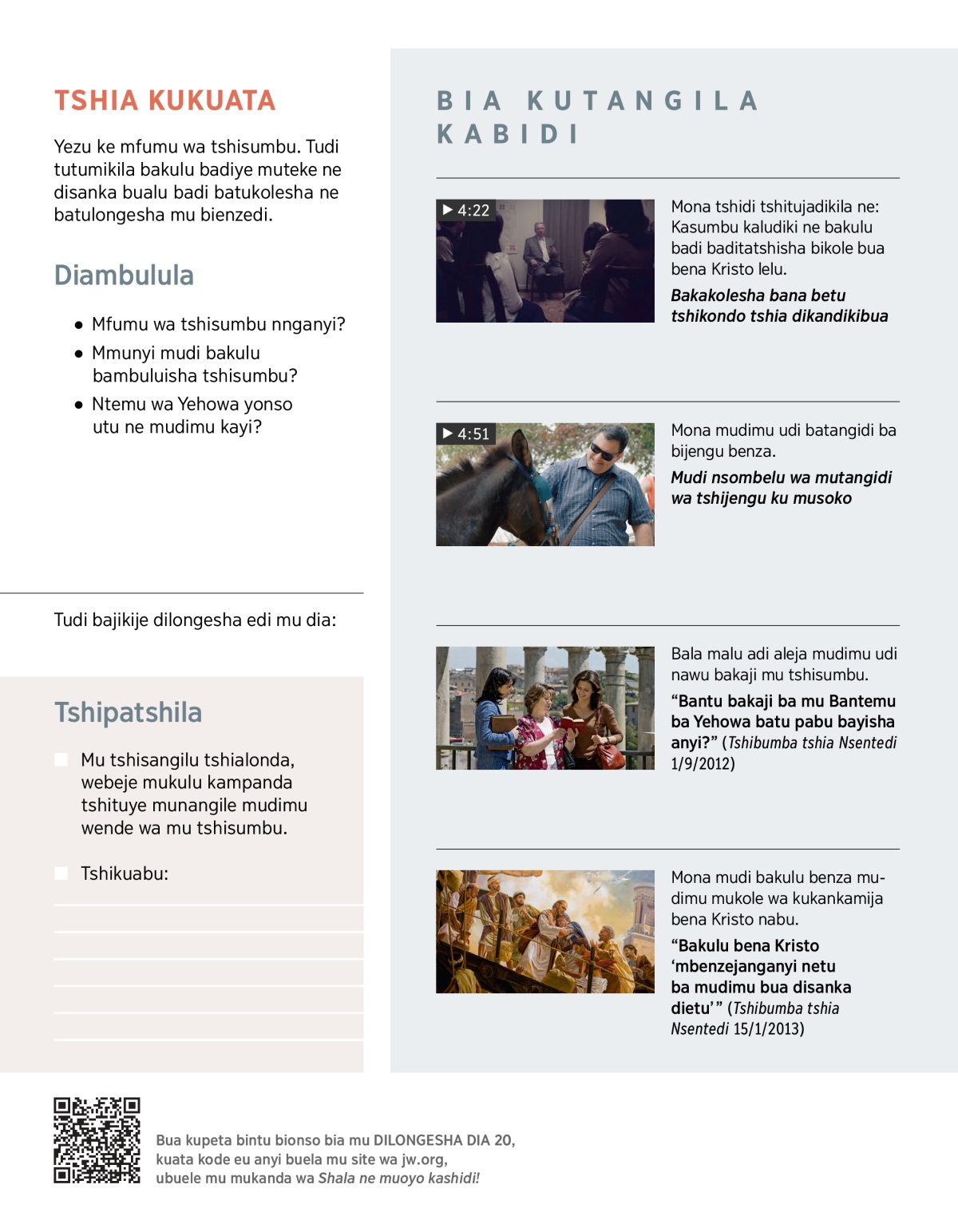 “Bantu bakaji ba mu Bantemu ba Yehowa batu pabu bayisha anyi?” (Tshibumba tshia Nsentedi 1/9/2012)