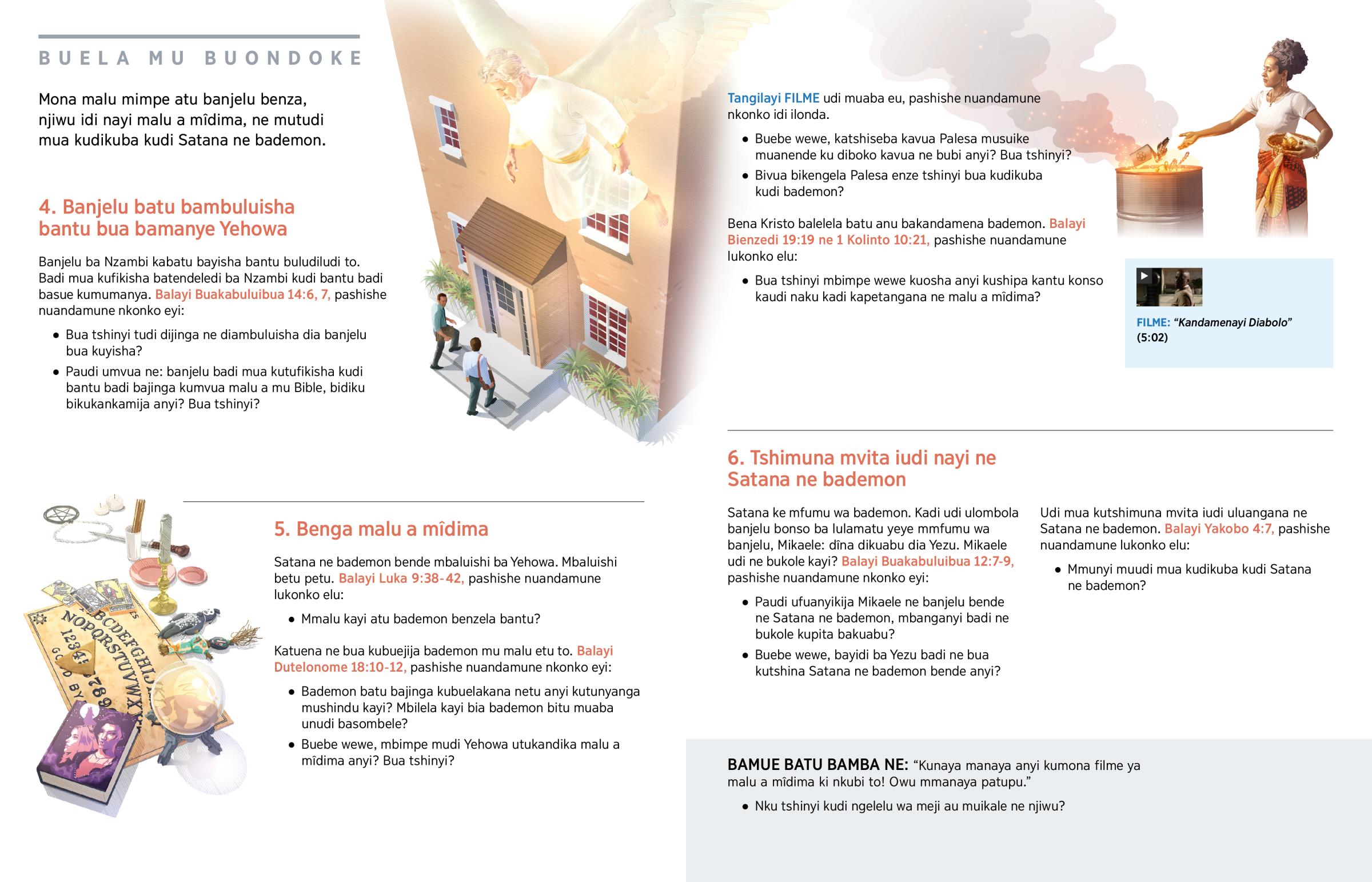 Satana ne bademon badi bapambuisha bantu ba bungi ne malu a mîdima adi tshilele tshibi tshia kubuelakana ne nyuma mibi. Tshilejilu, kudi bantu badi baya kudi bena mbuku ya mitoto, kudi bambi ba malu atshilualua, kudi bena lumona, ne kudi banganga. Bakuabu badi bakeba ngondapilu idi mibuelakane ne malu a mîdima. Mbitabijije kabidi bavule dishima dia ne: badi mua kuyukila ne bafue. Kadi Yehowa udi utudimuija ne: “Kuyi kudi bena mbuku, ne kuebeji malu kudi bantu batu bamba malu atshilualua.” (Lewitiki 19:31) Mmutudimuije nanku bua kutukuba kudi Satana ne bademon. Mbaluishi ba Nzambi, ne mbasue kutuenzela bibi.