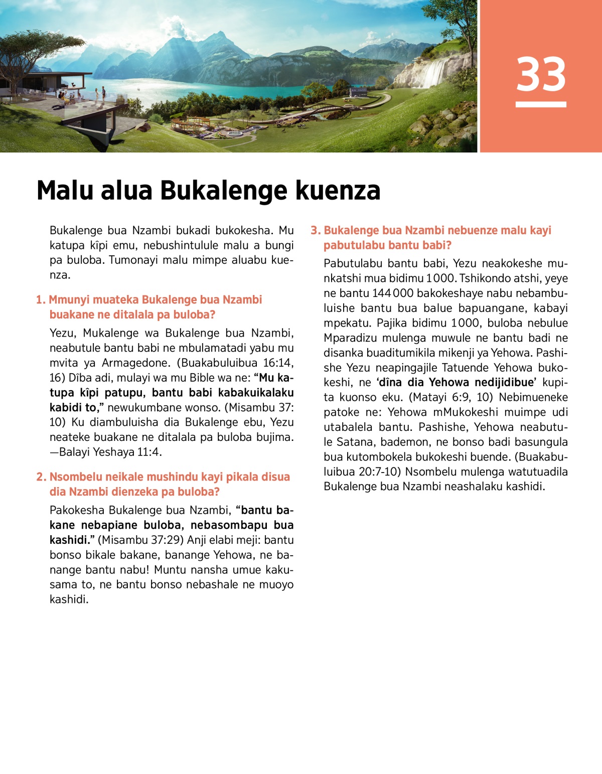 Bukalenge bua Nzambi nebukumbaje tshipatshila tshiabu. Nebuvuije buloba bujima Mparadizu wasamba batendeledi ba Yehowa ne muoyo kashidi.