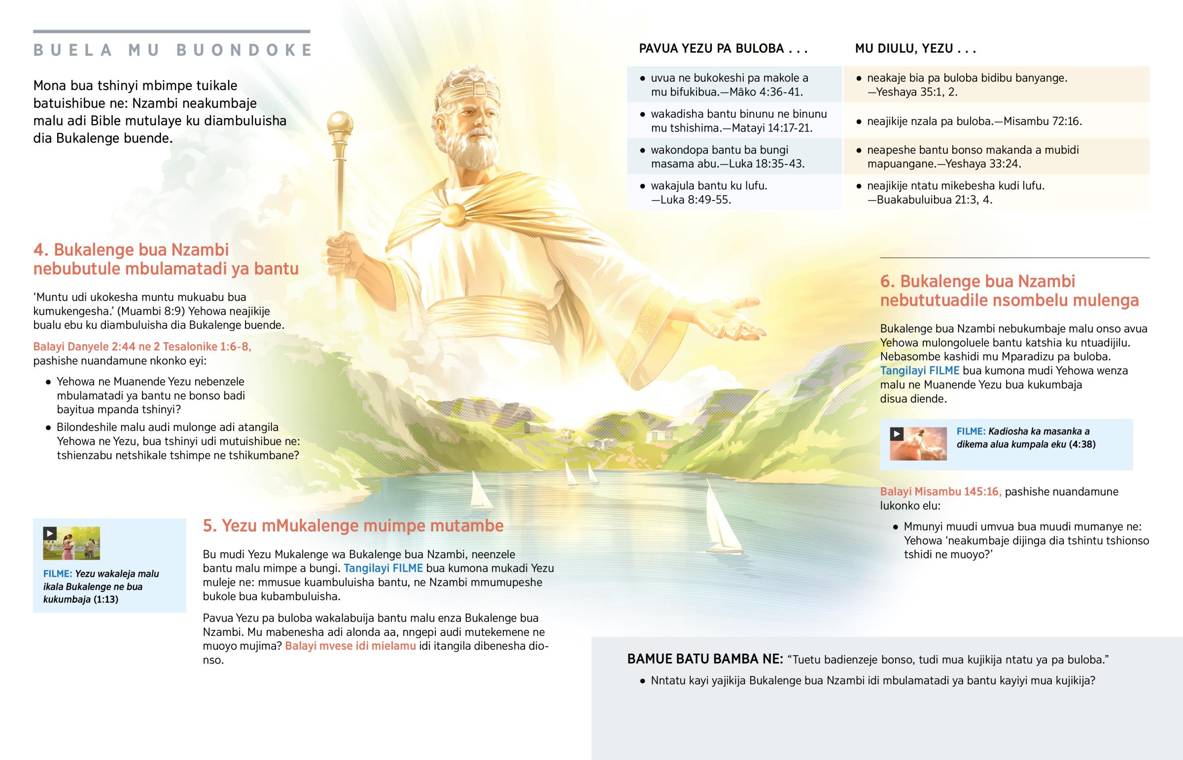 Bu mudi Yezu Mukalenge wa Bukalenge bua Nzambi, neenzele bantu malu mimpe a bungi. Tangilayi FILME bua kumona mukadi Yezu muleje ne: mmusue kuambuluisha bantu, ne Nzambi mmumupeshe bukole bua kubambuluisha.