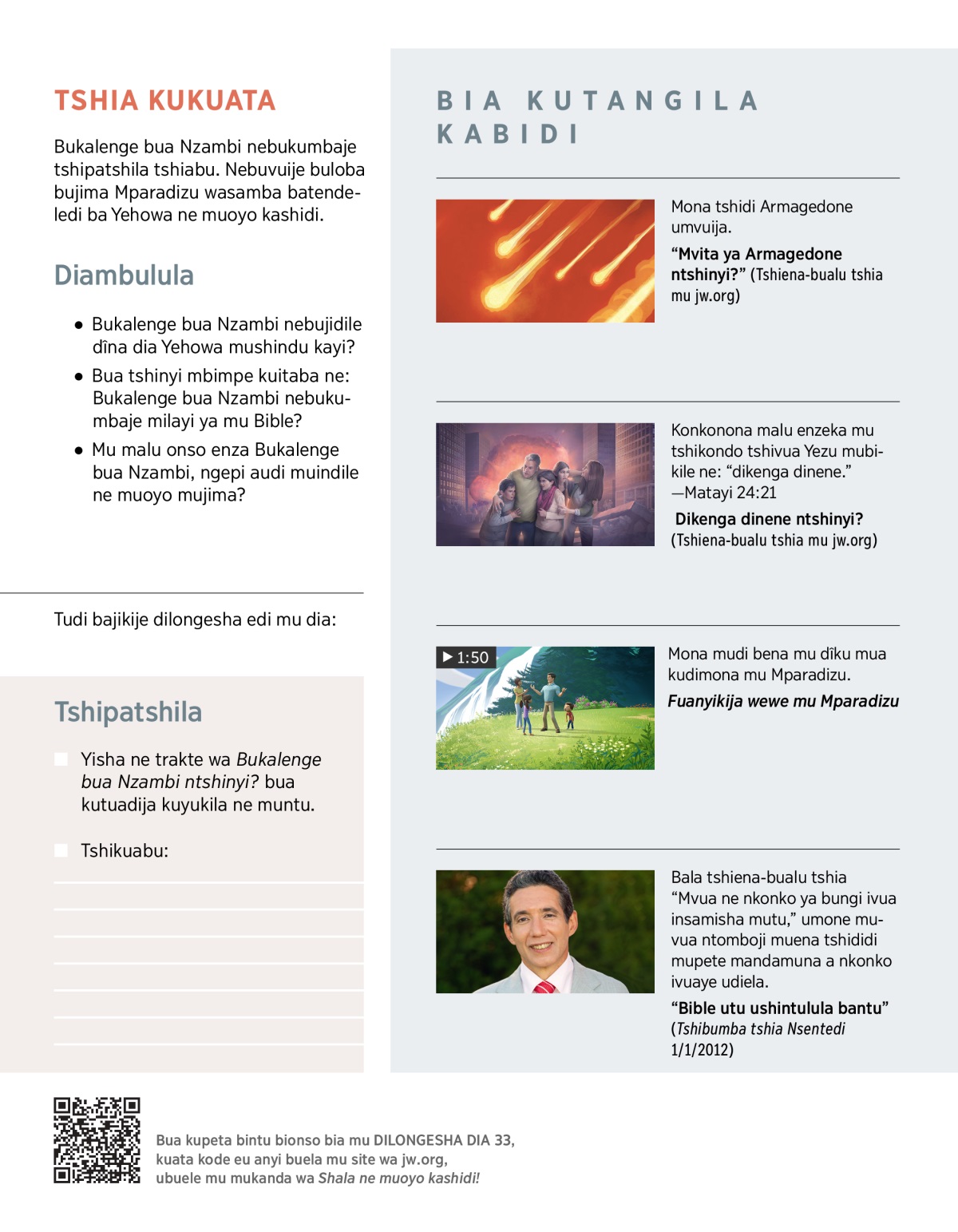 Mona bua tshinyi mbimpe tuikale batuishibue ne: Nzambi neakumbaje malu adi Bible mutulaye ku diambuluisha dia Bukalenge buende.