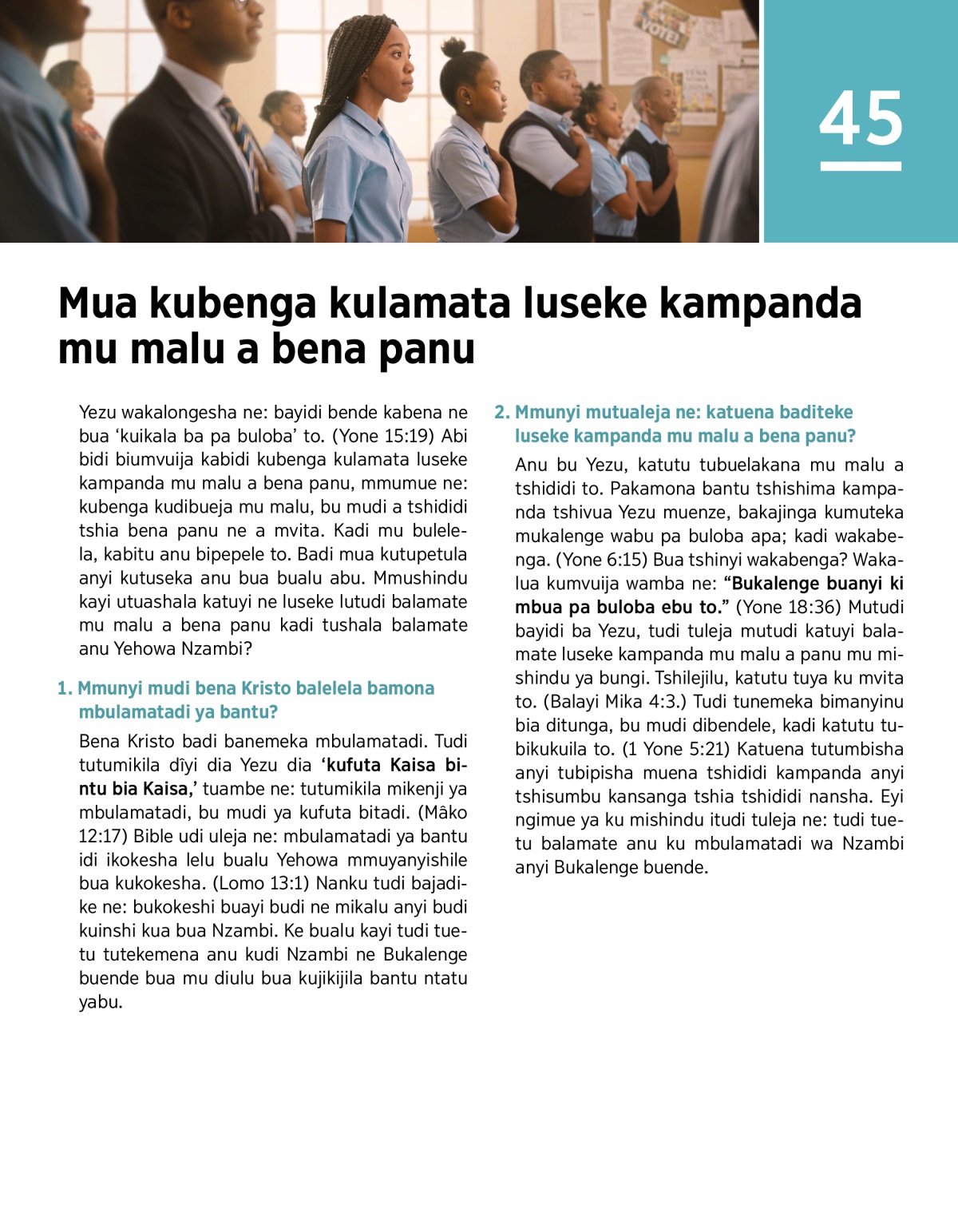 • Udi mua kulejaku bikondo biudi umona ne: bena Kristo kabena mua kutumikila bamfumu ba mbulamatadi anyi?