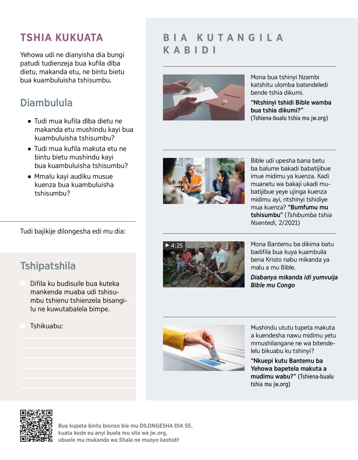 “Ntshinyi tshidi Bible wamba bua tshia dikumi?” (Tshiena-bualu tshia mu jw.org)
