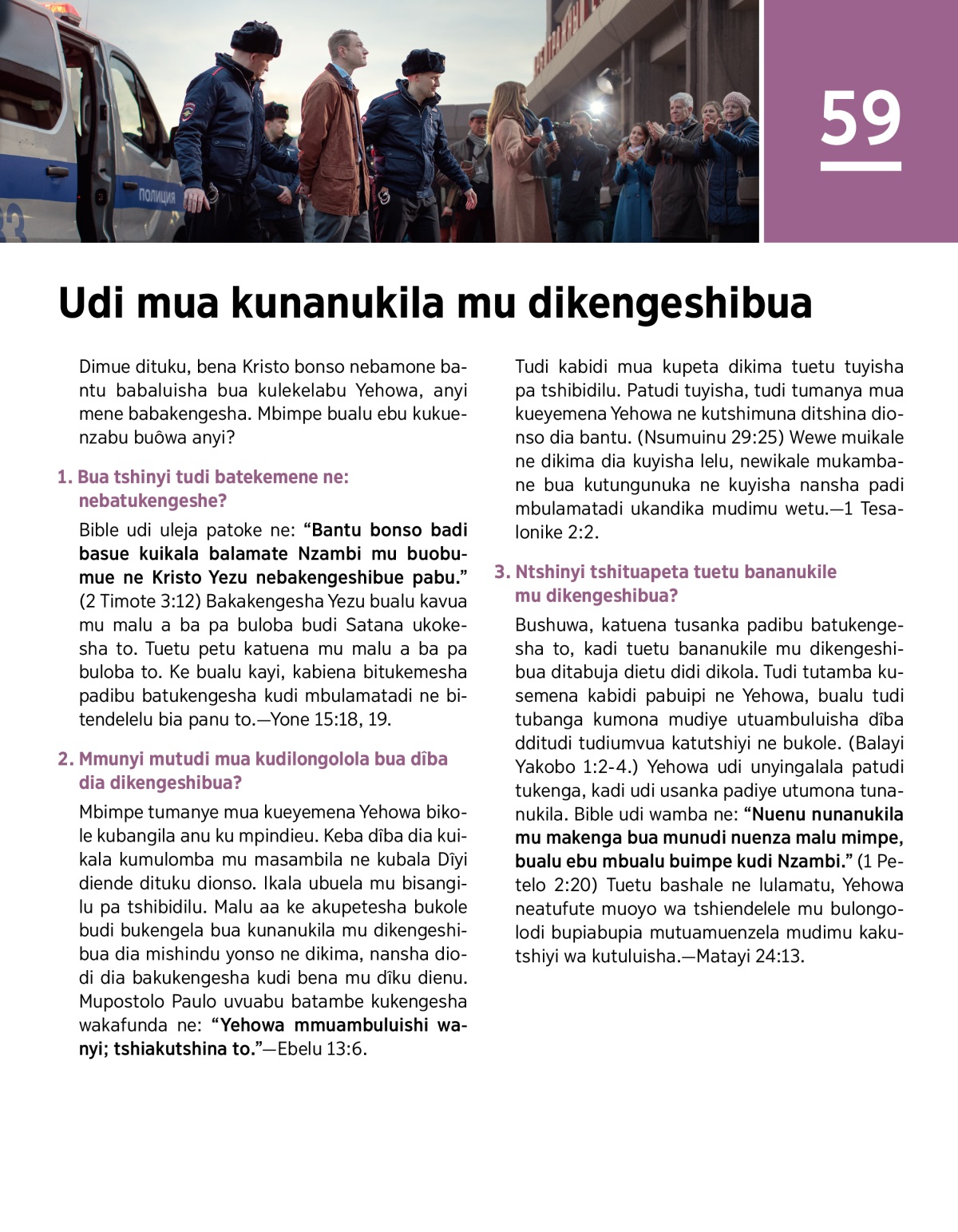 Bantemu ba Yehowa ba pa buloba bujima, bakulumpe ne bana, mbatungunuke ne kuenzela Yehowa mudimu ne lulamatu nansha pavuabu babakengeshe. Bua kumanya tshivua tshibambuluishe, tangilayi FILME. Pashishe nuandamune lukonko ludi lulonda.