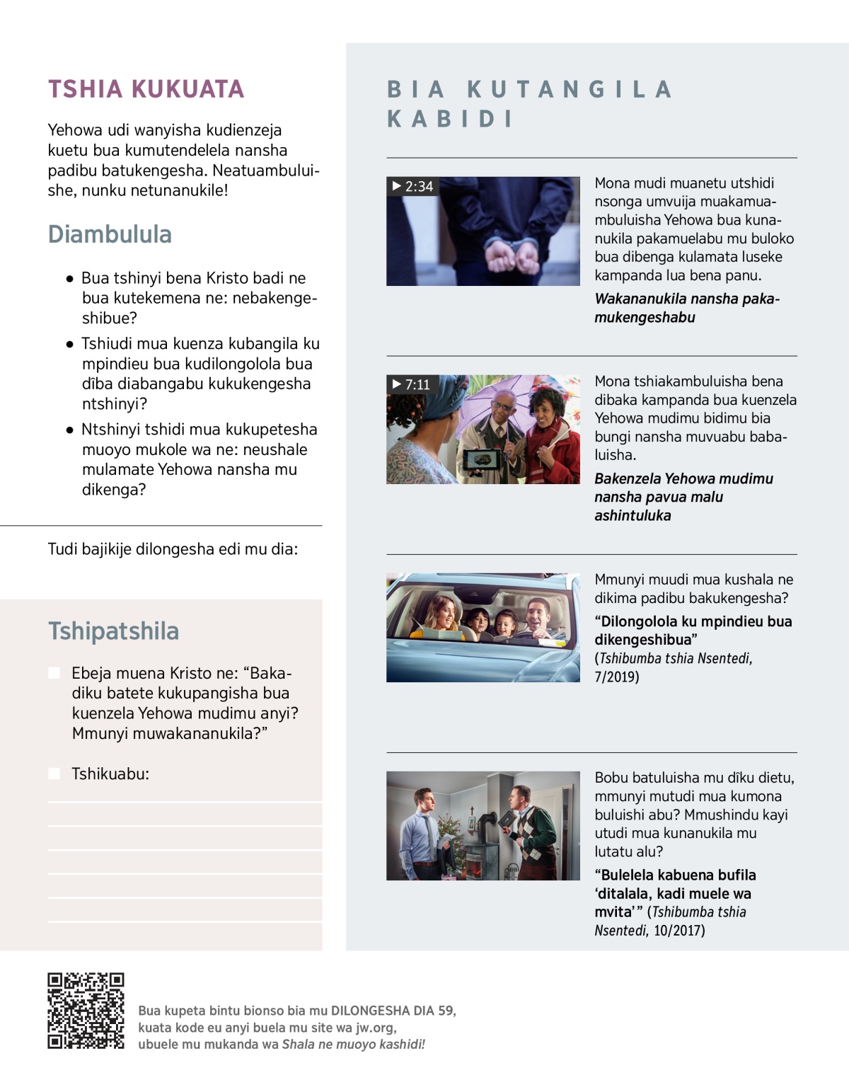 Mona tshiatuambuluisha bua kushala ne lulamatu kudi Yehowa nansha batukengesha, ne muatufutaye bua lulamatu luetu alu.
