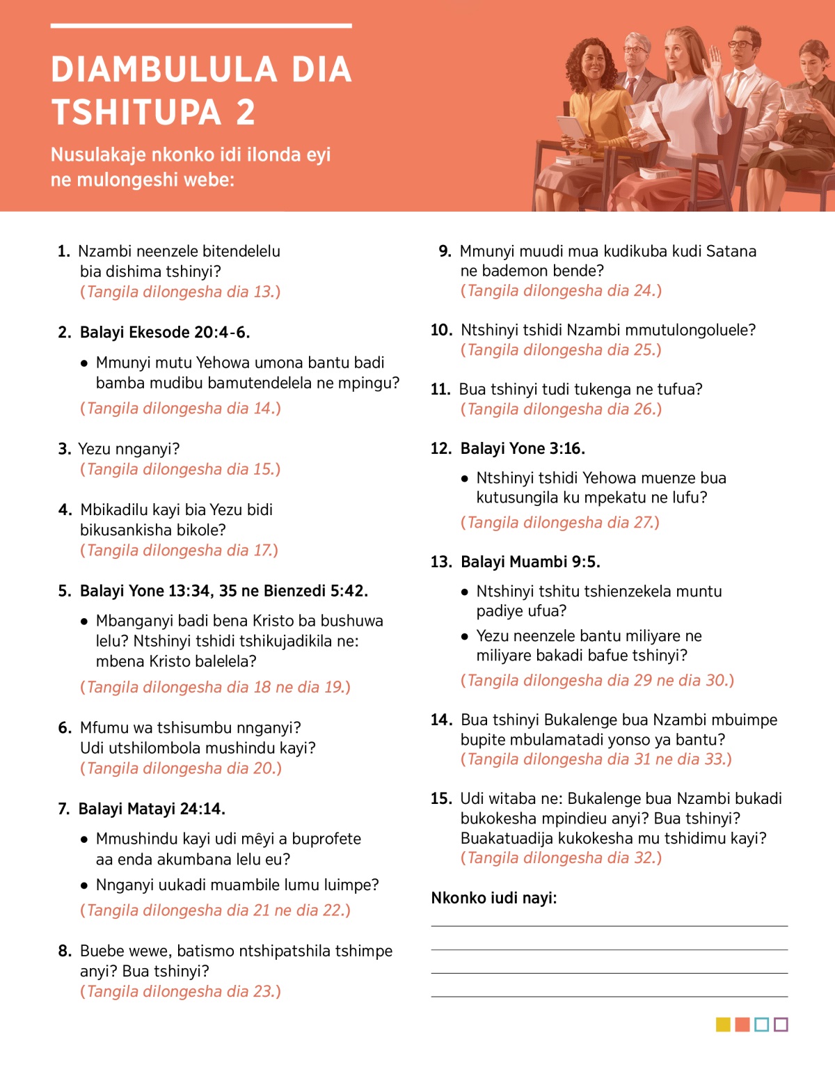 Udi witaba ne: Bukalenge bua Nzambi bukadi bukokesha mpindieu anyi? Bua tshinyi? Buakatuadija kukokesha mu tshidimu kayi?