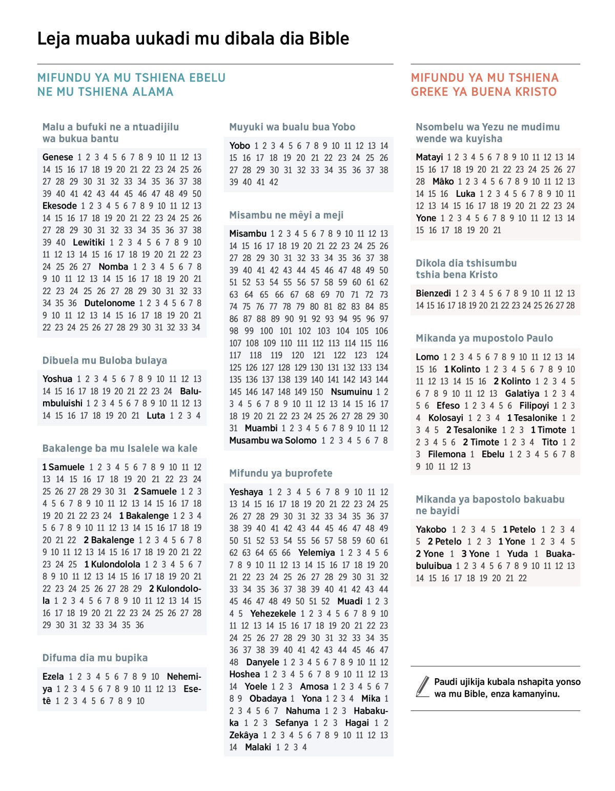 Paudi ujikija kubala nshapita yonso wa mu Bible, enza kamanyinu.