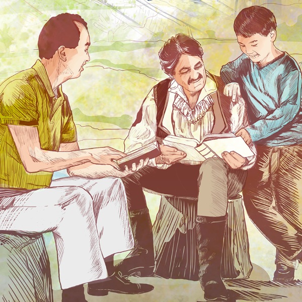 Mmuena malu mabi utudi tulongela kudiye mmuntu udi Yezu uyukila nende mu foto eu. Muntu mubi eu udi unyingalala bua malu ende mabi. Udi ulomba Yezu ne: “Umvulukaku pawikala mu Bukalenge buebe.” Nunku anu muudi umona mu foto eu, Yezu udi uyukila ne muenji wa malu mabi eu. Udiku mumanye tshidi Yezu umuambila anyi?—a Yezu udi umulaya wamba ne: “Bulelela, ndi nkuambila lelu ne: Newikale nanyi mu Mparadizu.”