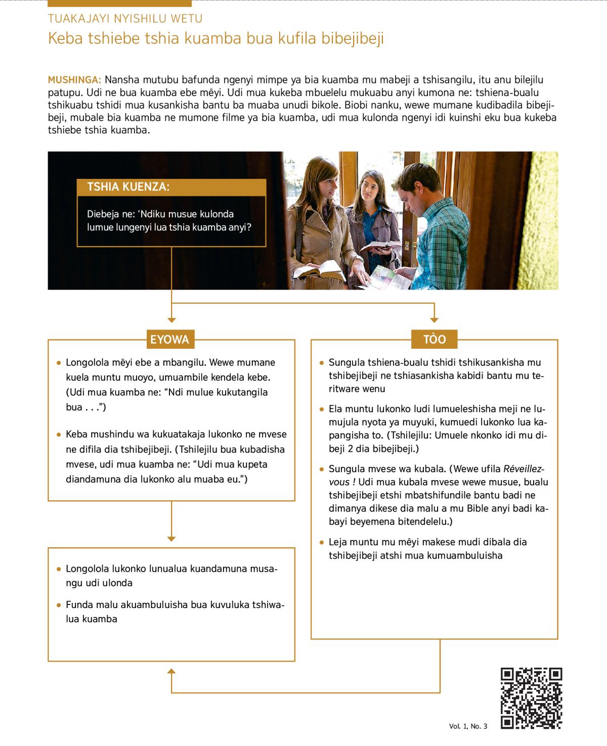 Sungula mvese wa kubala. (Wewe ufila Réveillez-vous! Udi mua kubala mvese wewe musue, bualu tshibejibeji etshi mbatshifundile bantu badi ne dimanya dikese dia malu a mu Bible anyi badi kabayi beyemena bitendelelu.)