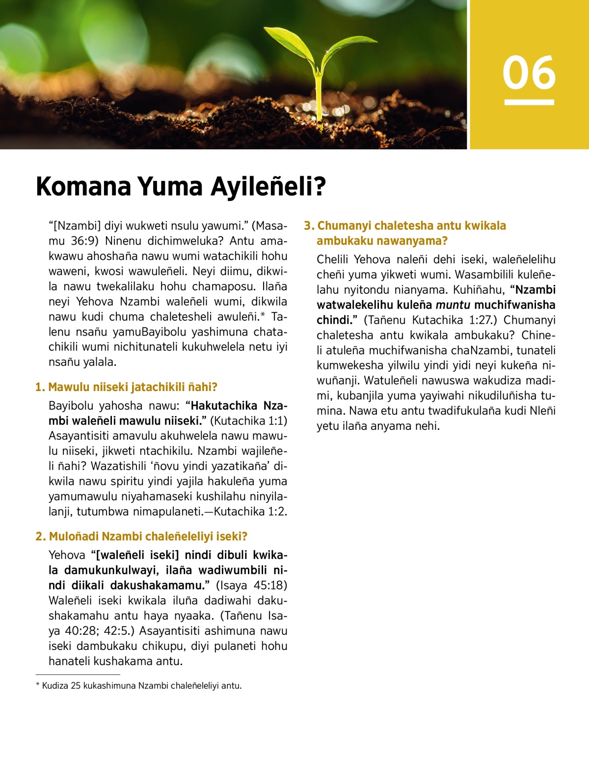 Talenu neyi chakwila ntañishilu yakwila nawu yuma yadileñeli yayeni yesekana nachahosha Bayibolu.