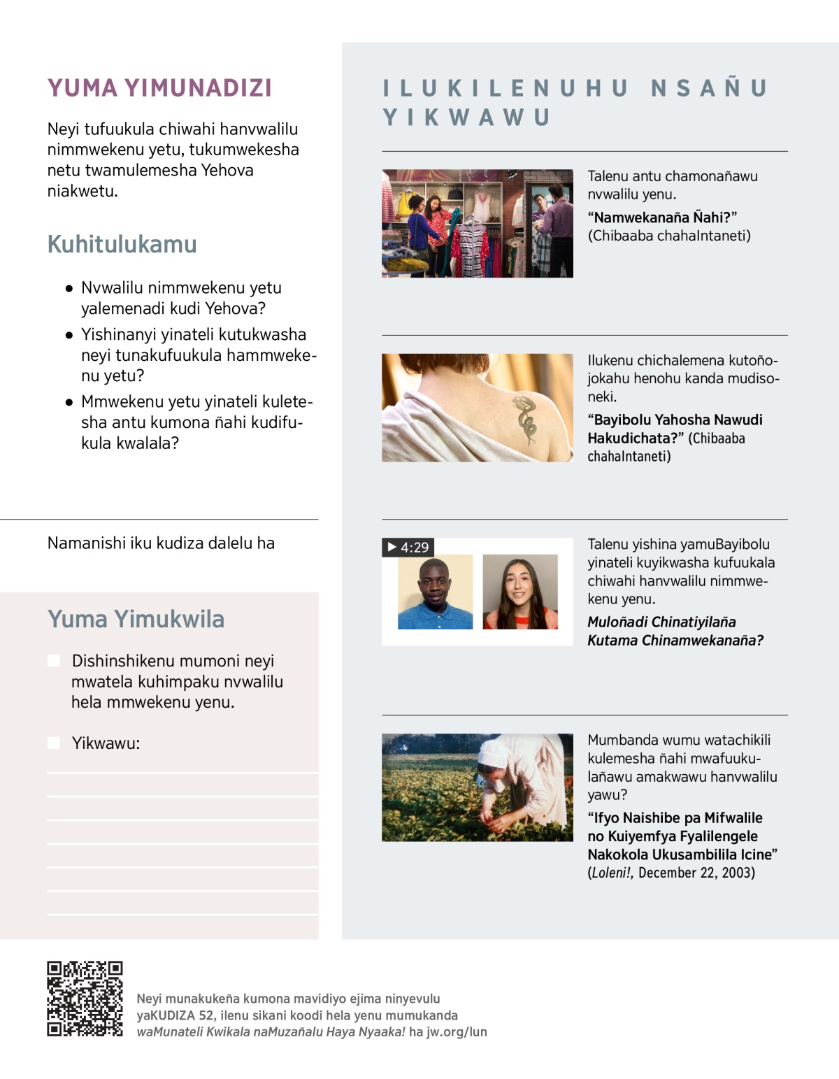 3. Mmwekenu yetu yinateli kukokola ñahi antu kwinza muchalala?