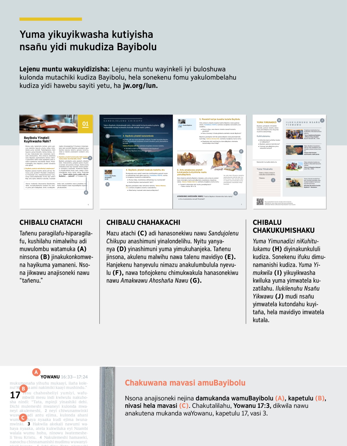 Lejenu muntu wakuyidizisha: Lejenu muntu wayinkeli iyi buloshuwa kulonda mutachiki kudiza Bayibolu, hela sonekenu fomu yakulombelahu kudiza yidi hawebu sayiti yetu, ha jw.org/lun.
