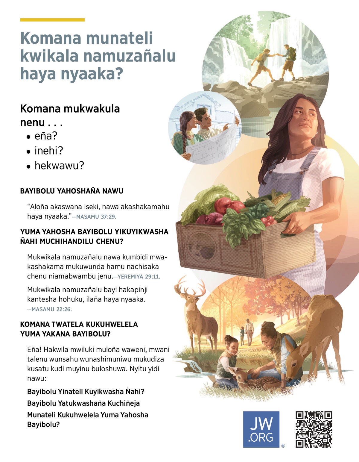 Mukwikala namuzañalu nawa kumbidi mwakashakama mukuwunda hamu nachisaka chenu niamabwambu jenu.—YEREMIYA 29:11.