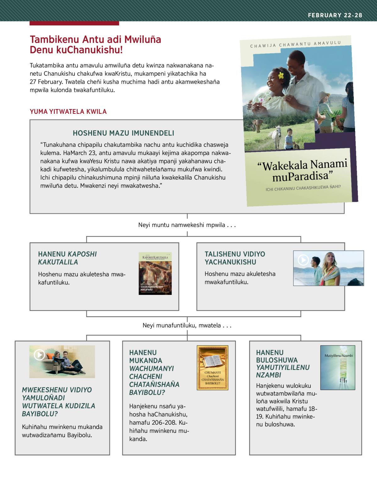 Hanjekenu wulokuku wutwatambwilaña muloña wakwila Kristu watufwilili, hamafu 18-19. Kuhiñahu mwinkenu buloshuwa.