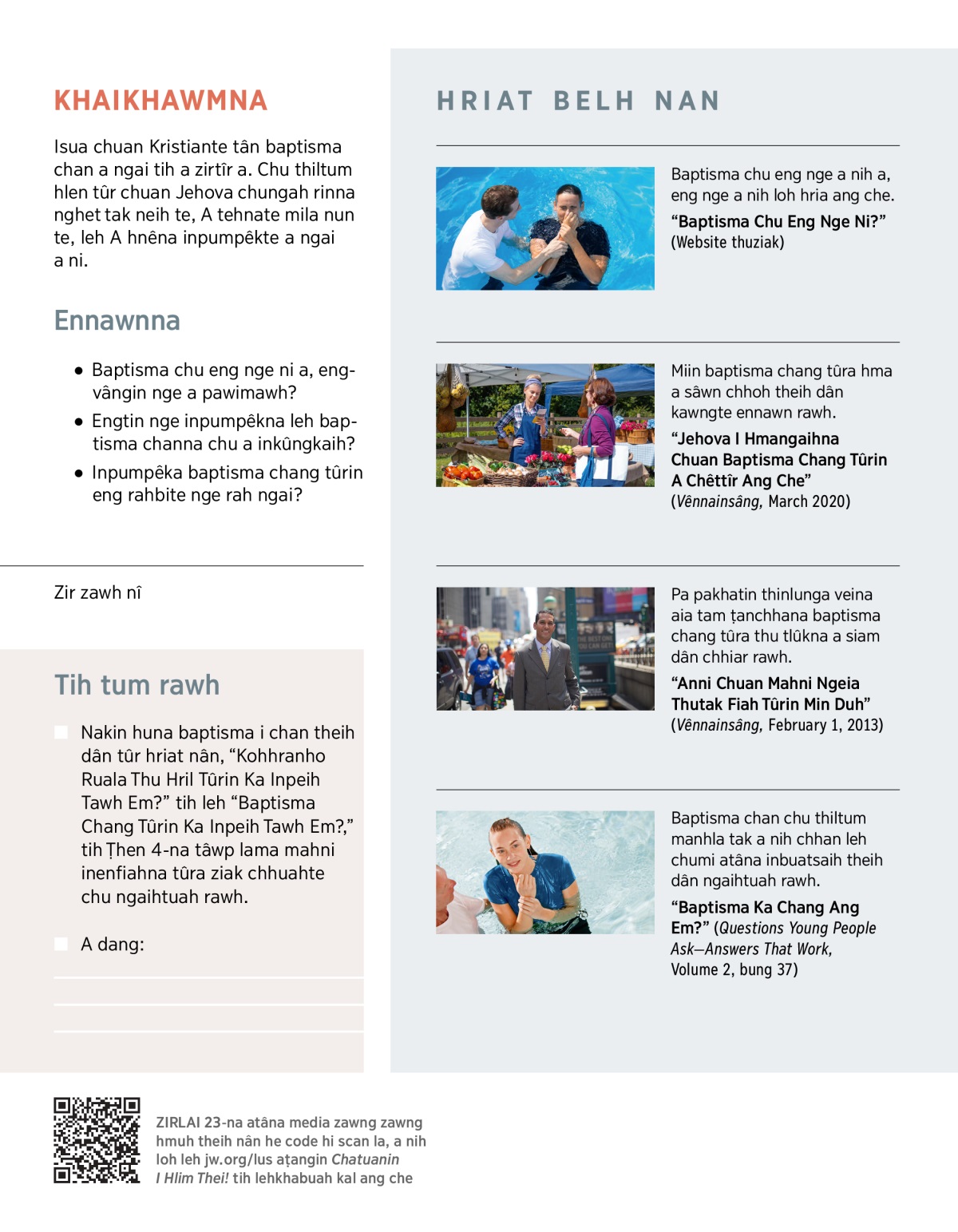 “Jehova I Hmangaihna Chuan Baptisma Chang Tûrin A Chêttîr Ang Che” (Vênnainsâng, March 2020)