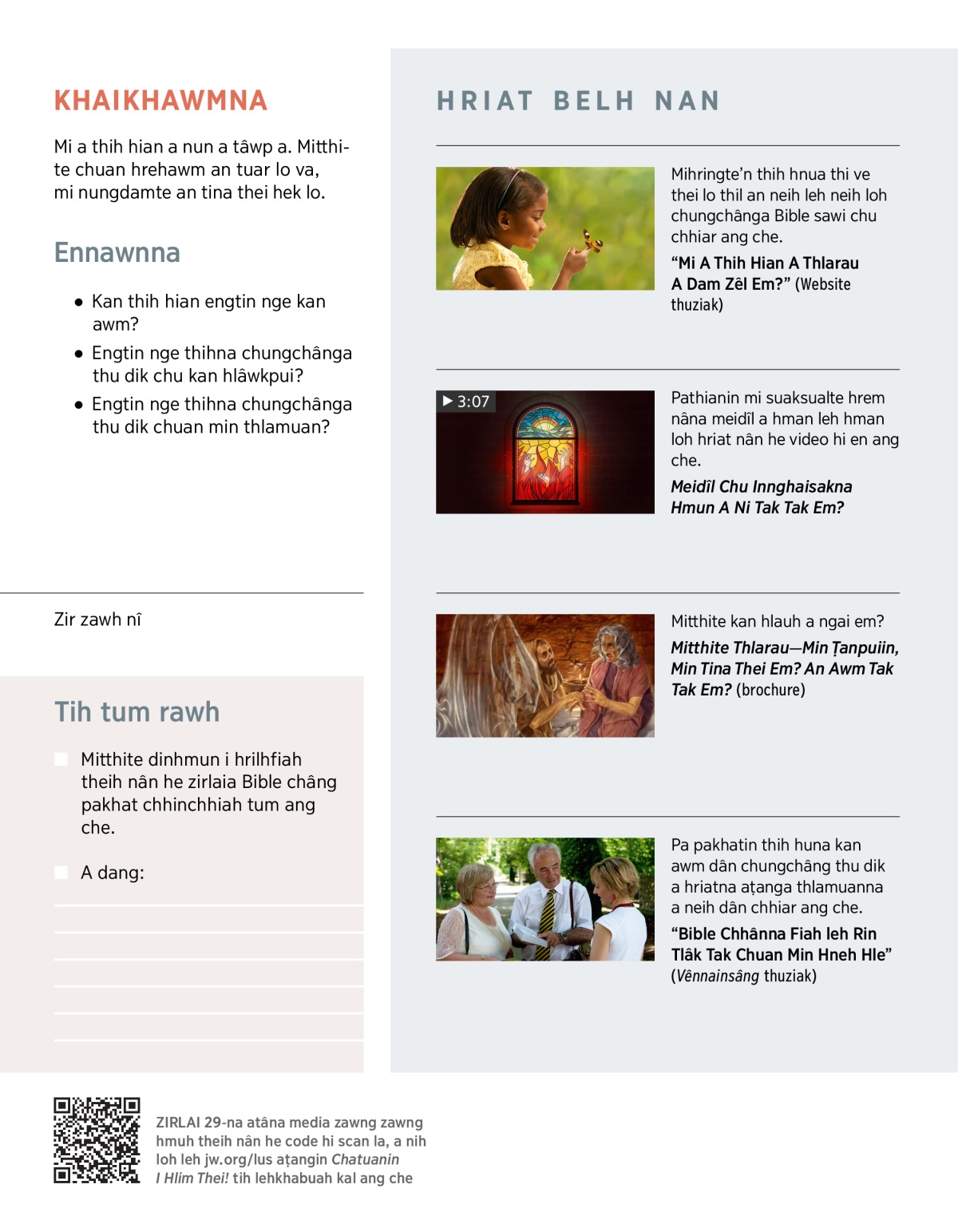 “Bible Chhânna Chiang Tak Leh Dik Tak Chuan Ka Rilru A Hneh Hle” (Vênnainsâng thuziak)