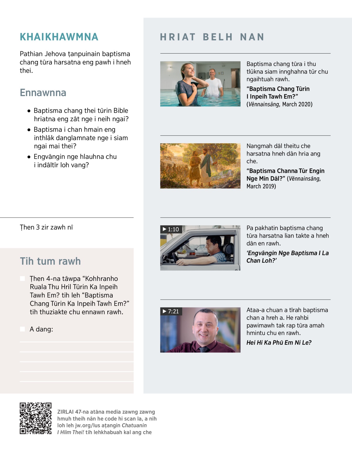 “Baptisma Chang Tûrin I Inpeih Tawh Em?” (Vênnainsâng, March 2020)