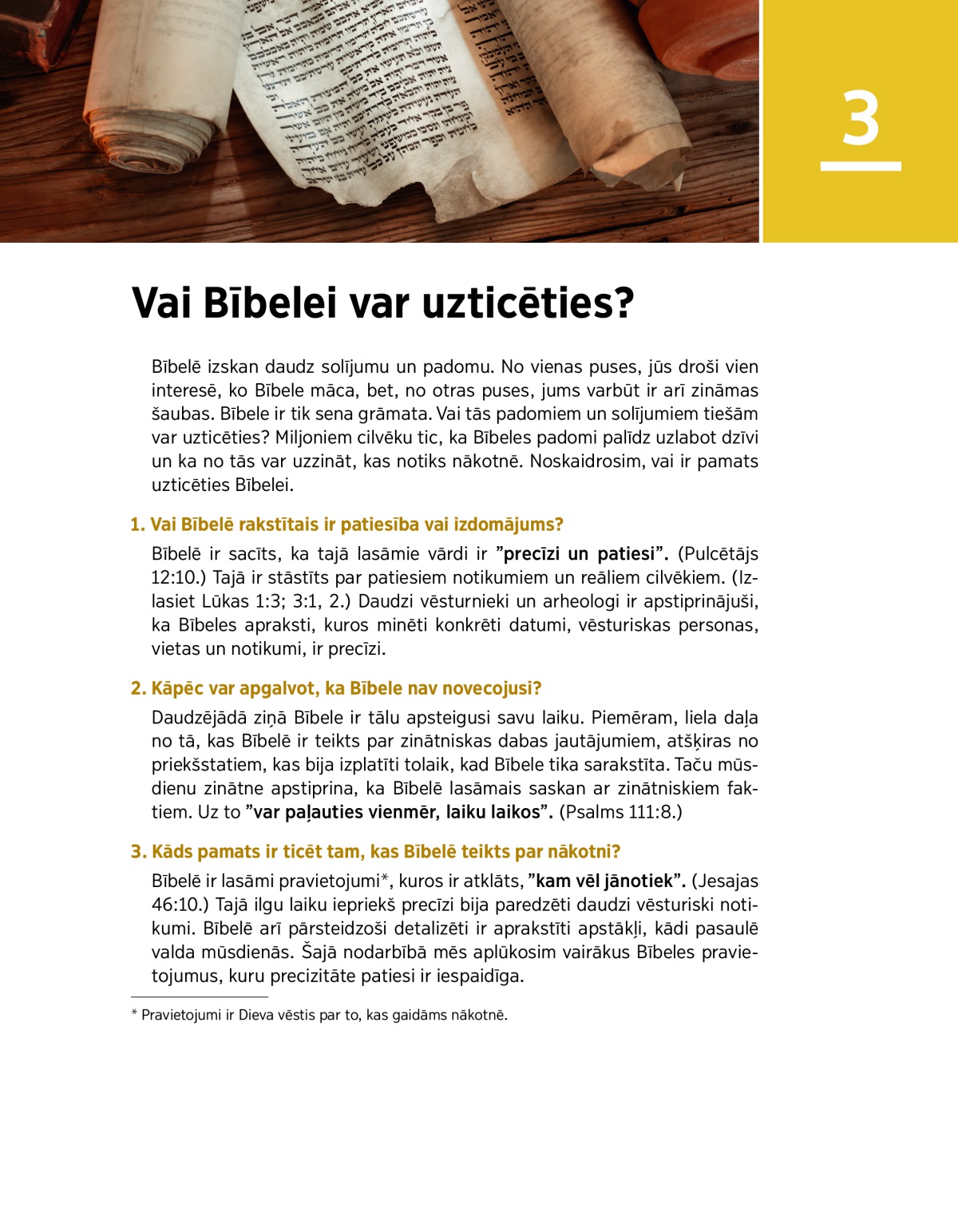 3. Kāds pamats ir ticēt tam, kas Bībelē teikts par nākotni?