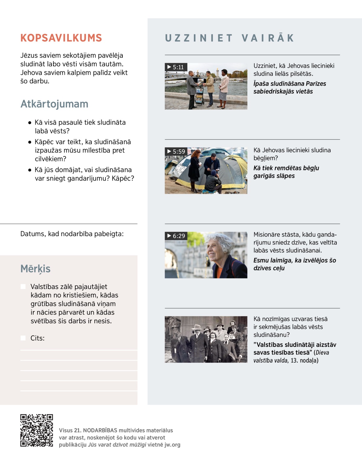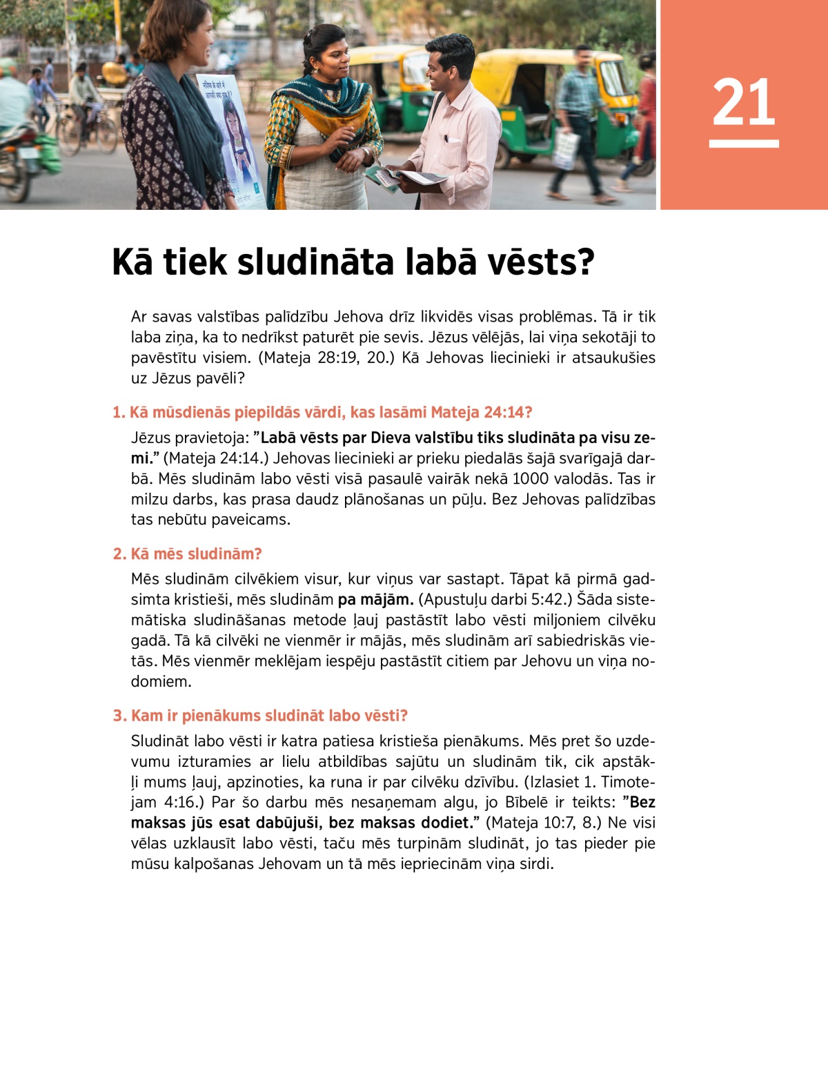 Jehovas liecinieki dara visu iespējamo, lai it visur pasludinātu cilvēkiem labo vēsti. Atskaņojiet VIDEO. Jautājums pārrunām:
