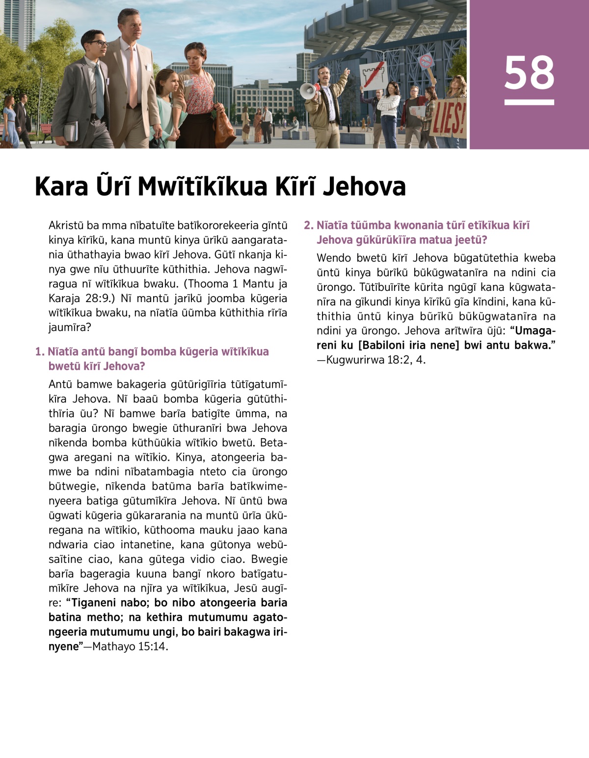 Nĩatĩa tũbuĩrĩte kũthithia rĩrĩa twaigua mantũ jagũcambia ũthuranĩri bwa Jehova? Thooma Njuno 14:15, rĩu bwarĩĩrie kĩũria gĩkĩ: