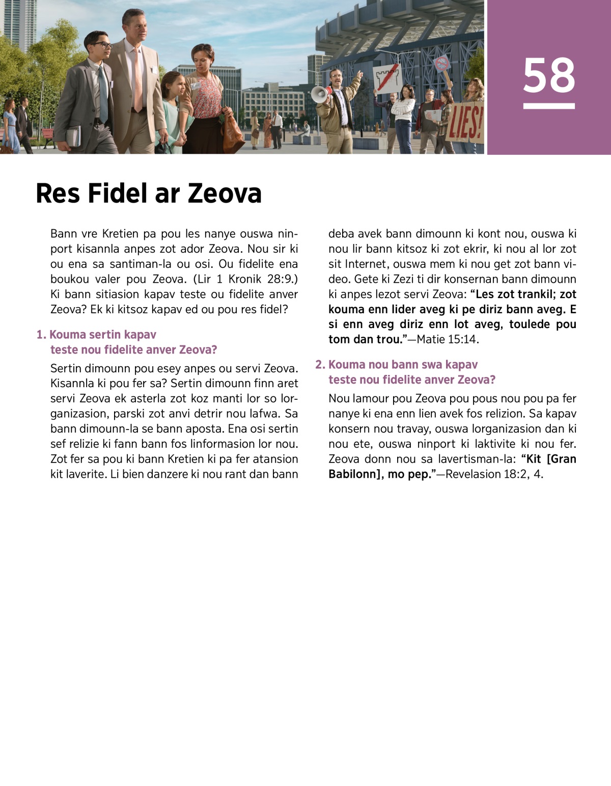 Ou pou aprann kouma ou kapav anpes ninport kisannla afebli ou fidelite anver Zeova. Ou pou trouve osi kouma ou kapav montre ou fidelite anver Zeova kan ou kit Gran Babilonn.