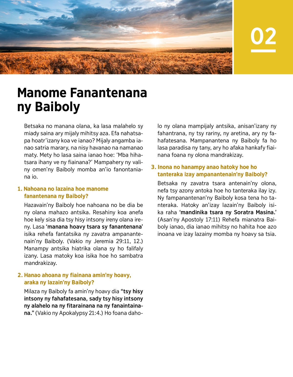 1. Nahoana no lazaina hoe manome fanantenana ny Baiboly?
