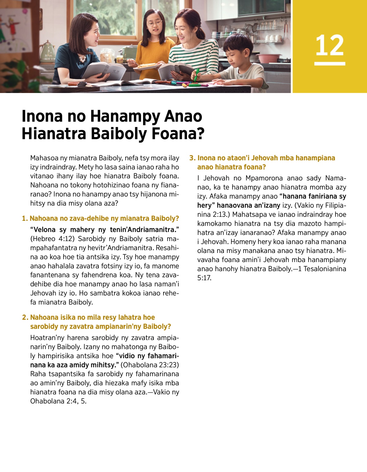 Inona no Hanampy Anao Hianatra Baiboly Foana?