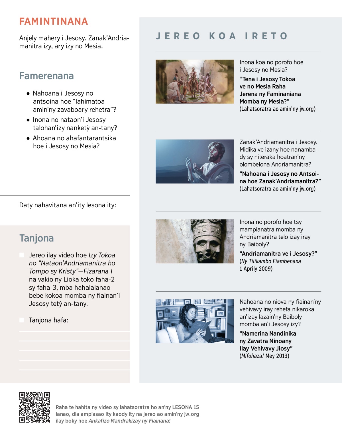 “Nahoana i Jesosy no Antsoina hoe Zanak’Andriamanitra?” (Lahatsoratra ao amin’ny jw.org)