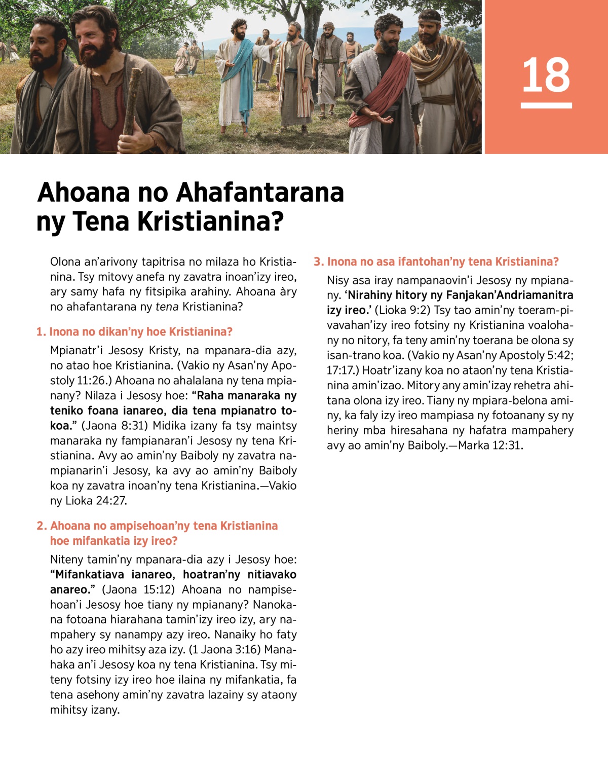 Olona an’arivony tapitrisa no milaza ho Kristianina. Tsy mitovy anefa ny zavatra inoan’izy ireo, ary samy hafa ny fitsipika arahiny. Ahoana àry no ahafantarana ny tena Kristianina?