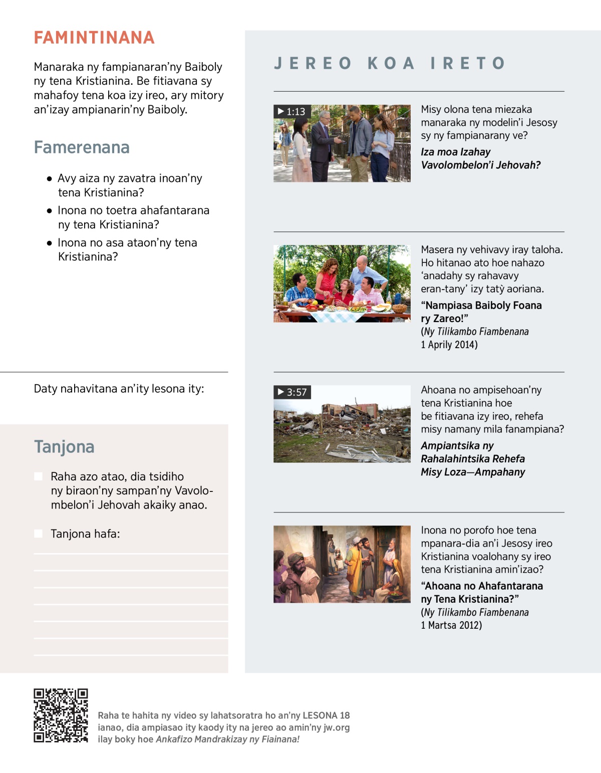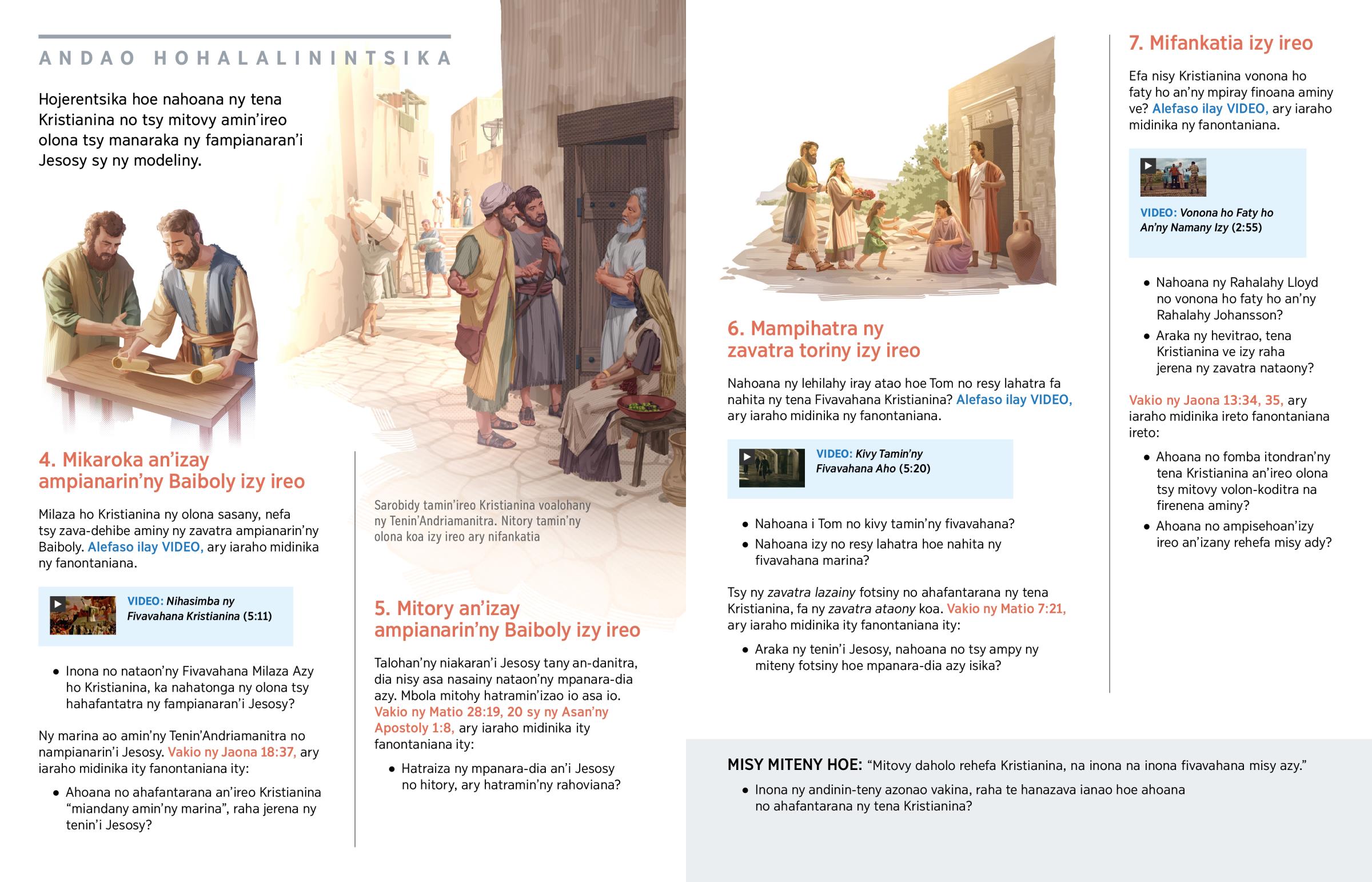 Vakio ny Jaona 13:34, 35, ary iaraho midinika ireto fanontaniana ireto: