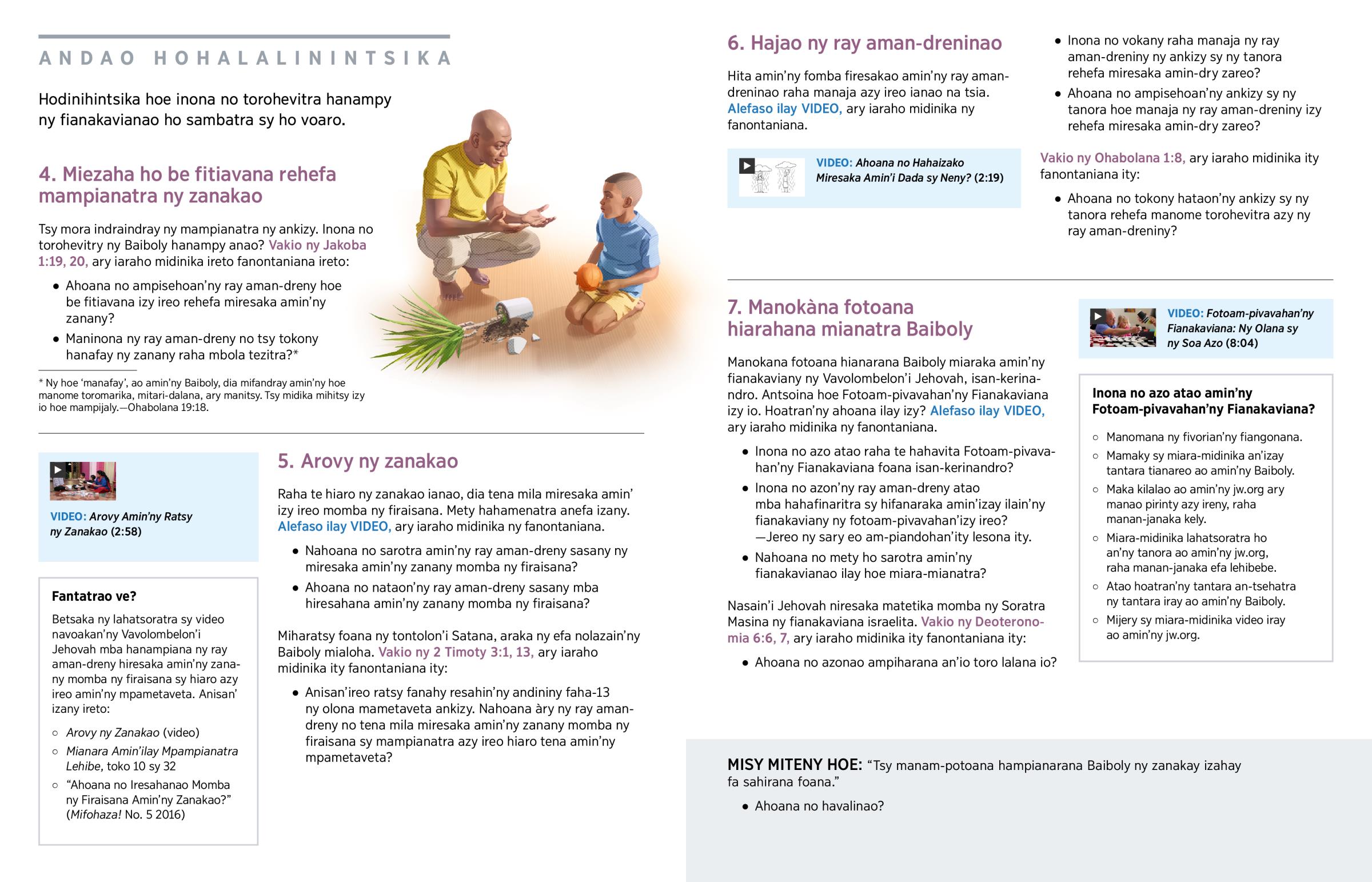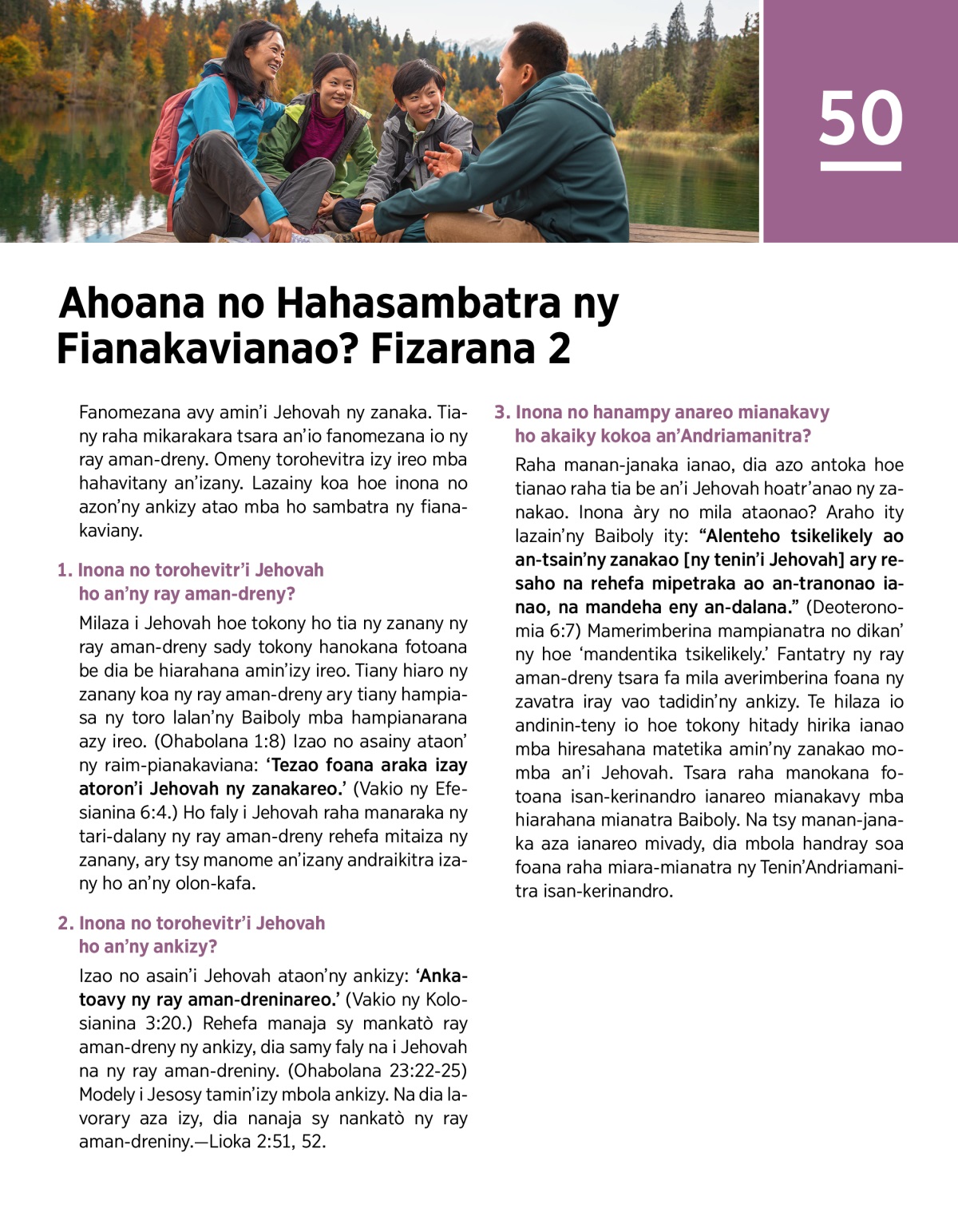 Tian’i Jehovah raha tia sy mampianatra ary miaro ny zanany ny ray aman-dreny. Ny ankizy indray tiany hanaja sy hankatò ny ray aman-dreniny. Tiany koa raha miara-mianatra Baiboly ny fianakaviana.