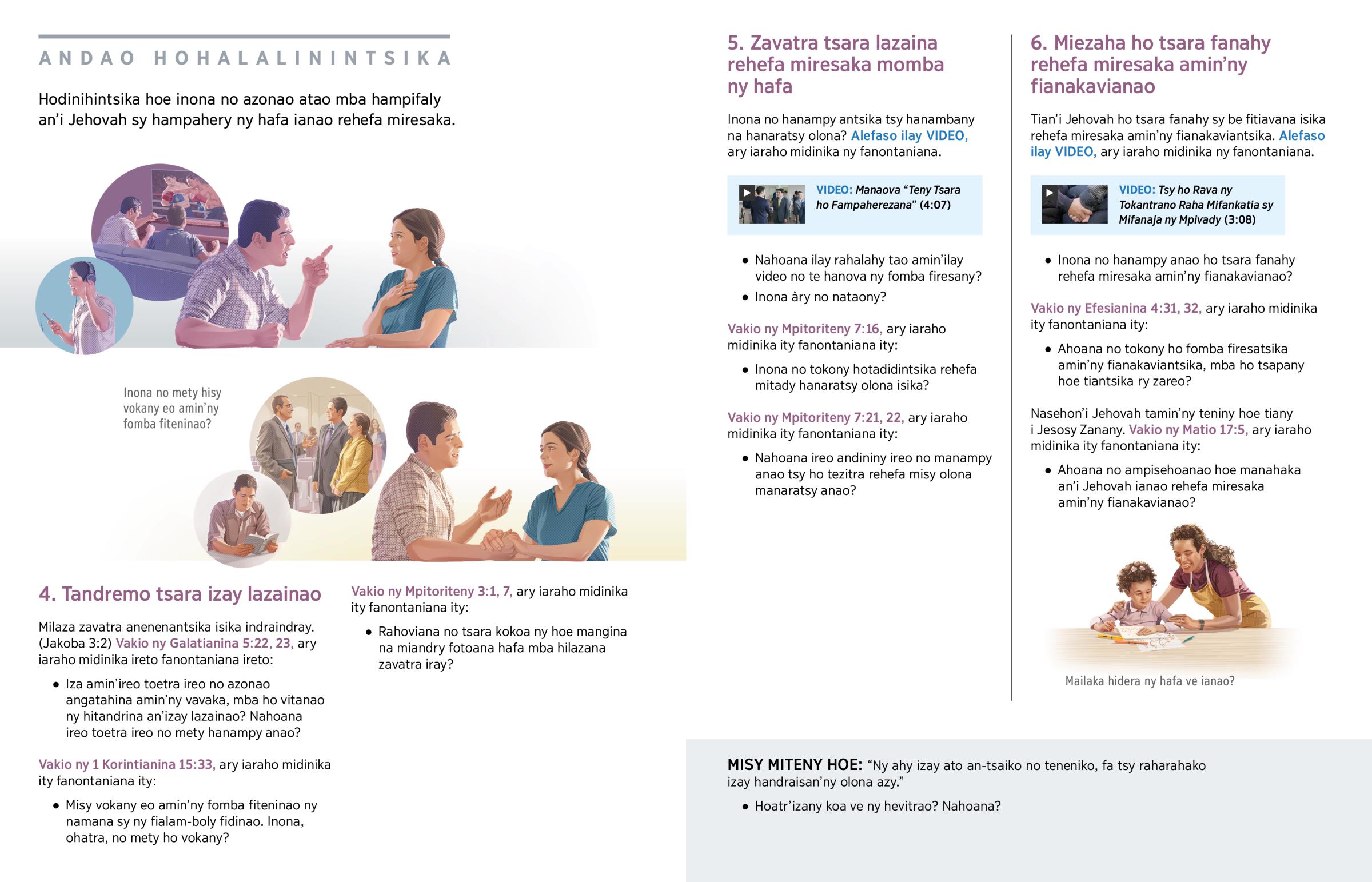 Tian’i Jehovah ho tsara fanahy sy be fitiavana isika rehefa miresaka amin’ny fianakaviantsika. Alefaso ilay VIDEO, ary iaraho midinika ny fanontaniana.