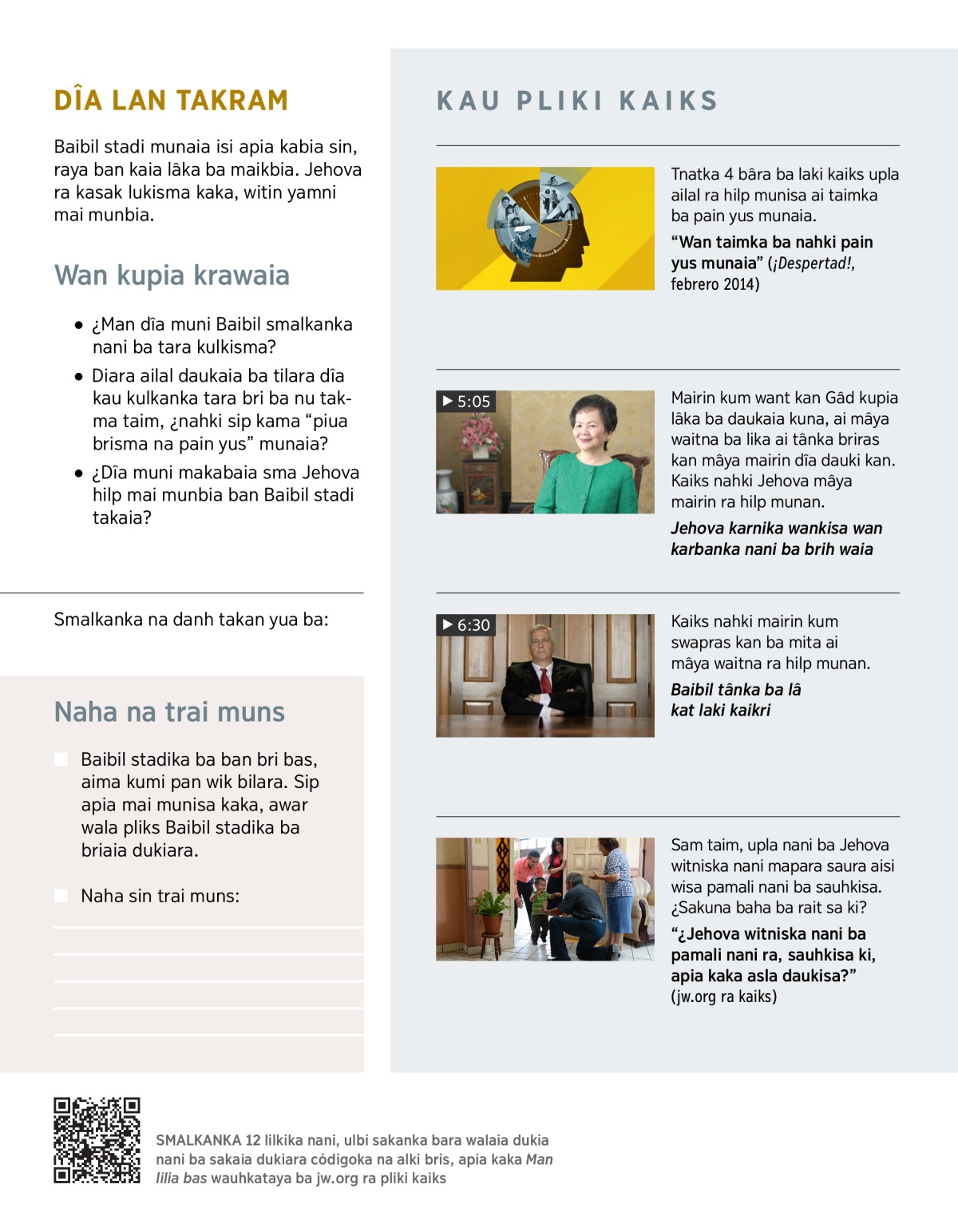 Naha borska nani mariki ba baku, ¿man dîa daukaia sma upla kum Baibil stadi takma apia mai wibia kaka? ¿Dîa muni?