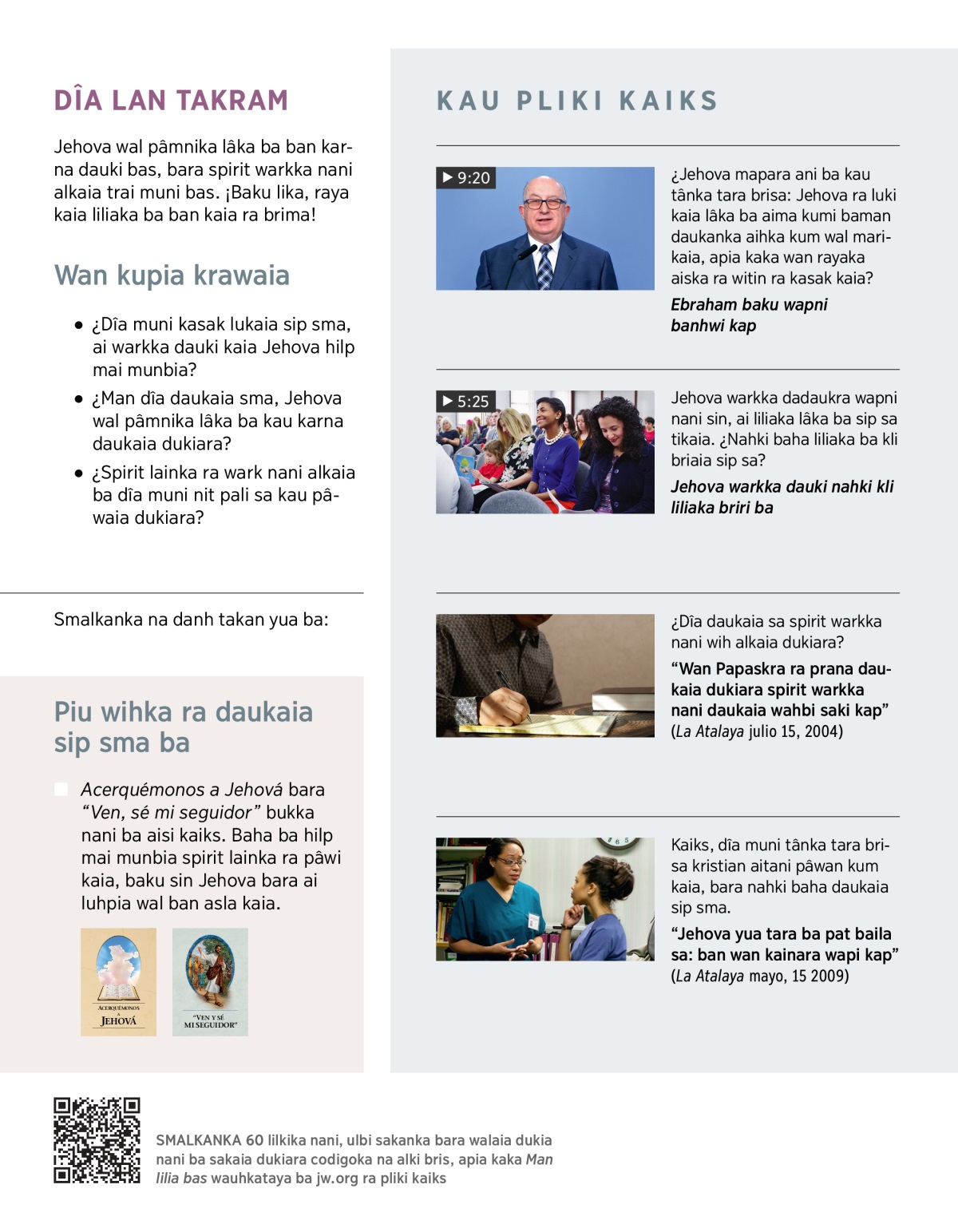 Jehova wal pâmnika lâka ba ban karna dauki bas, bara spirit warkka nani alkaia trai muni bas. ¡Baku lika, raya kaia liliaka ba ban kaia ra brima!