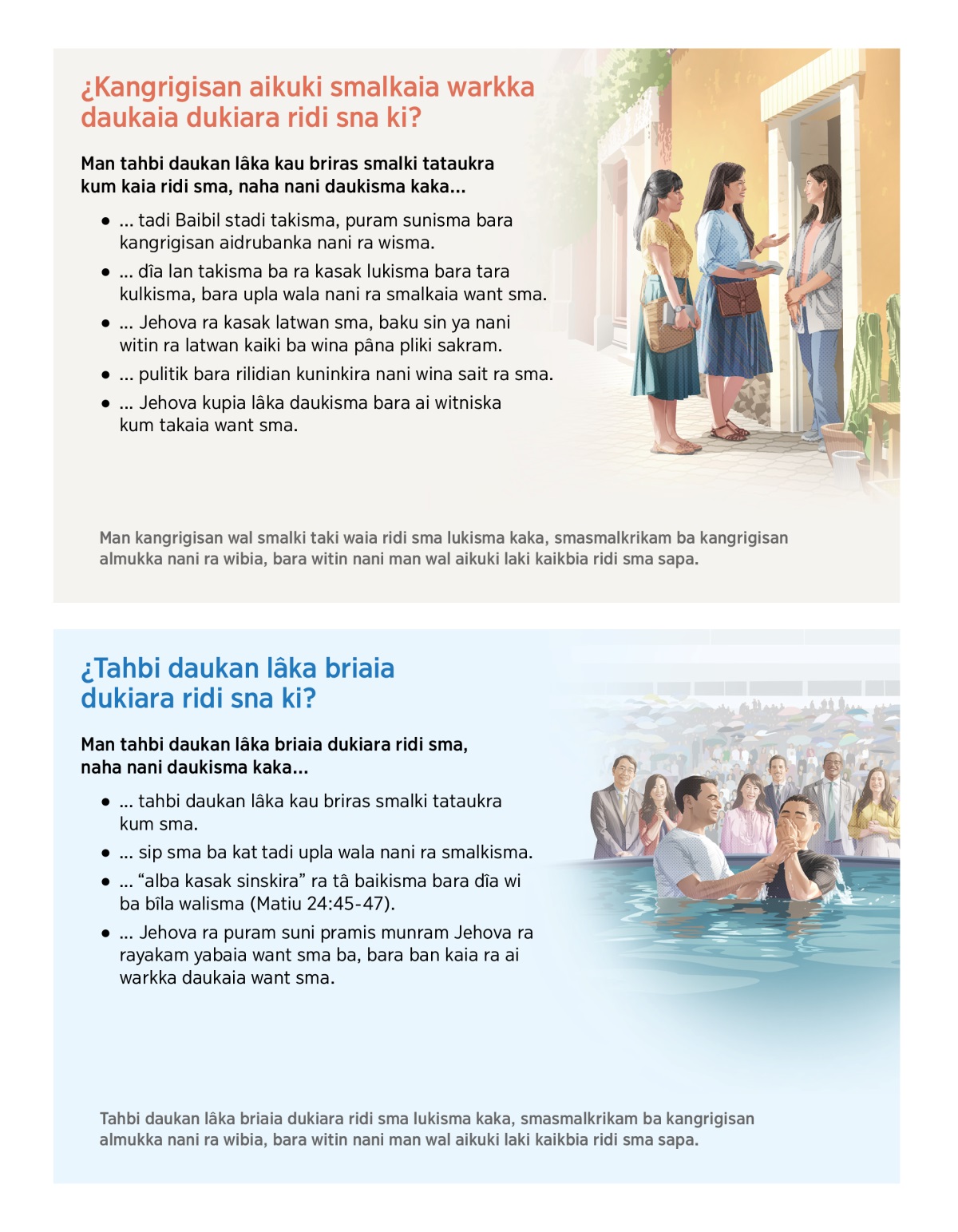 ... “alba kasak sinskira” ra tâ baikisma bara dîa wi ba bîla walisma (Matiu 24:45-47).