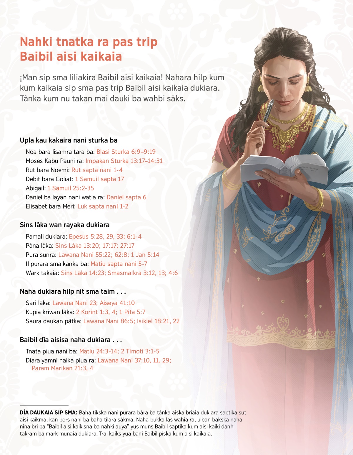 DÎA DAUKAIA SIP SMA: Baha tikska nani purara bâra ba tânka aiska briaia dukiara saptika sut aisi kaikma, kan bors nani ba baha tilara sâkma. Naha bukka las wahia ra, ulban bakska naha nina bri ba “Baibil aisi kaikisna ba nahki auya” yus muns Baibil saptika kum aisi kaiki danh takram ba mark munaia dukiara. Trai kaiks yua bani Baibil pîska kum aisi kaikaia.