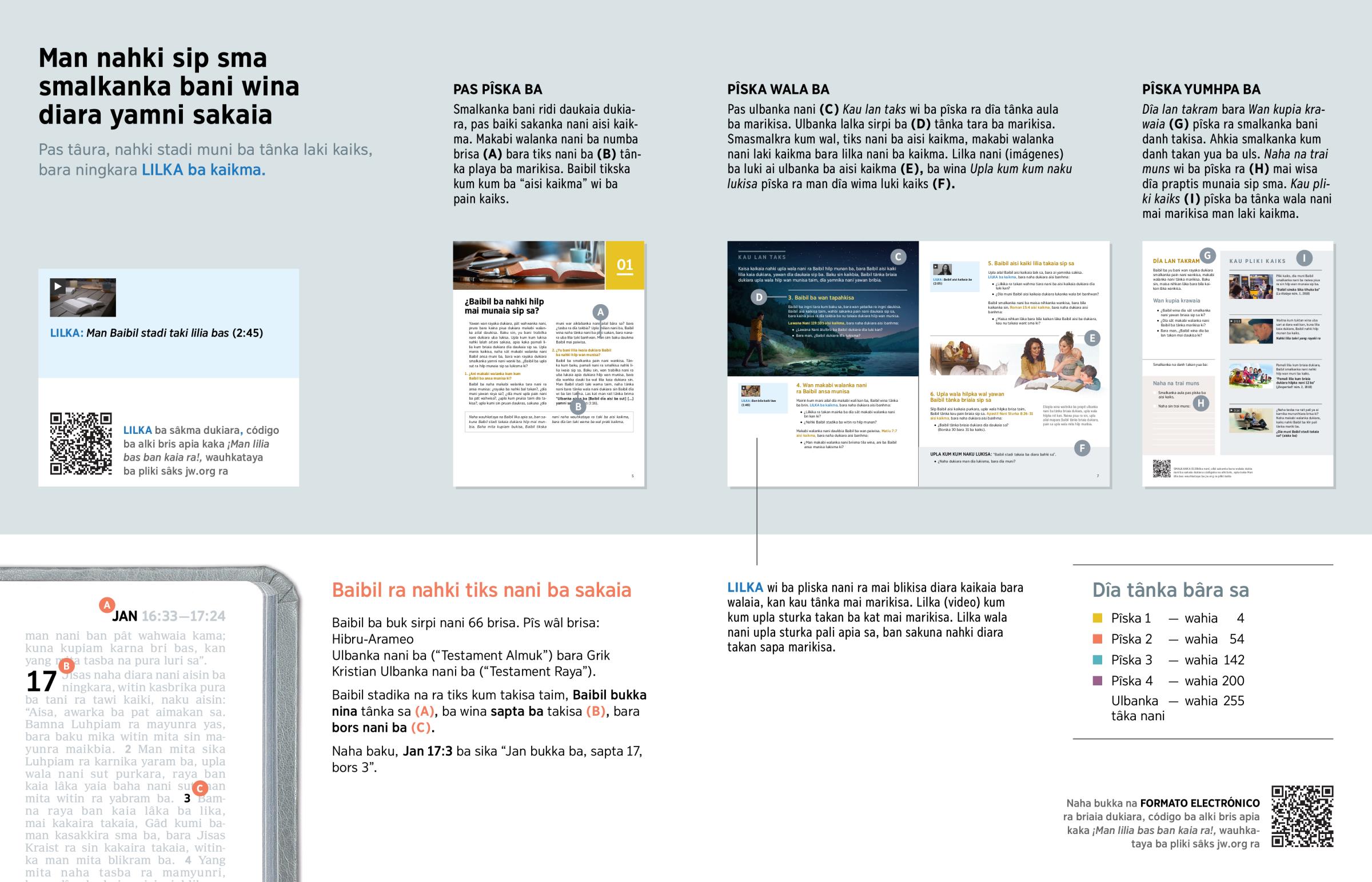 Baibil ba buk sirpi nani 66 brisa. Pîs wâl brisa: Hibru-Arameo Ulbanka nani ba (“Testament Almuk”) bara Grik Kristian Ulbanka nani ba (“Testament Raya”).