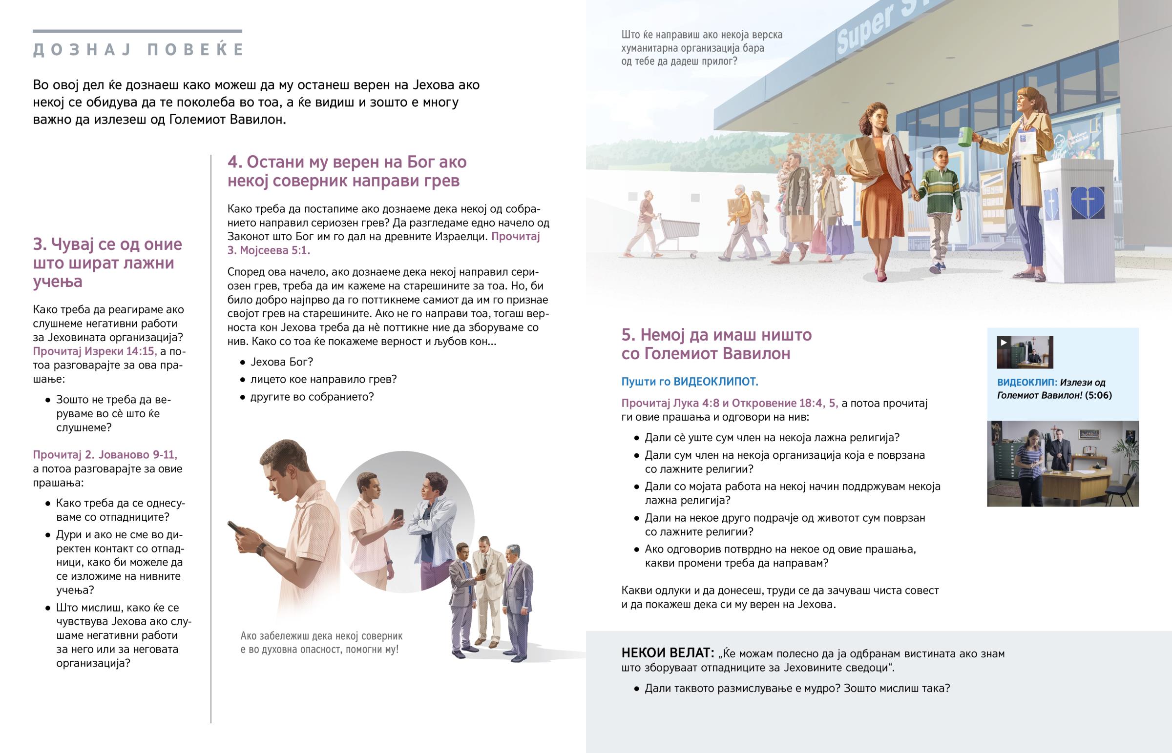 Во овој дел ќе дознаеш како можеш да му останеш верен на Јехова ако некој се обидува да те поколеба во тоа, а ќе видиш и зошто е многу важно да излезеш од Големиот Вавилон.