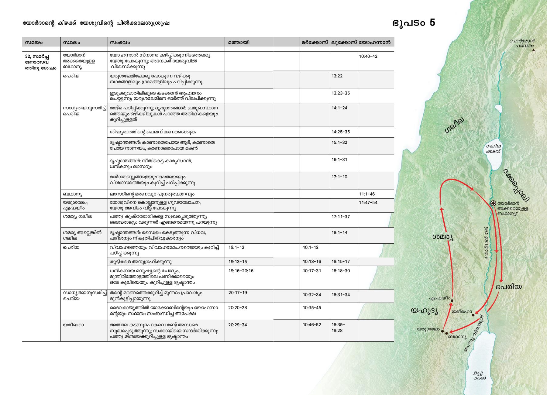 ഭൂമിയിലായിരുന്നപ്പോൾ യേശുവിന്റെ ജീവിതത്തിൽ നടന്ന പ്രധാനസംഭവങ്ങൾ—യോർദാന്റെ കിഴക്ക് യേശുവിന്റെ പിൽക്കാലശുശ്രൂഷ