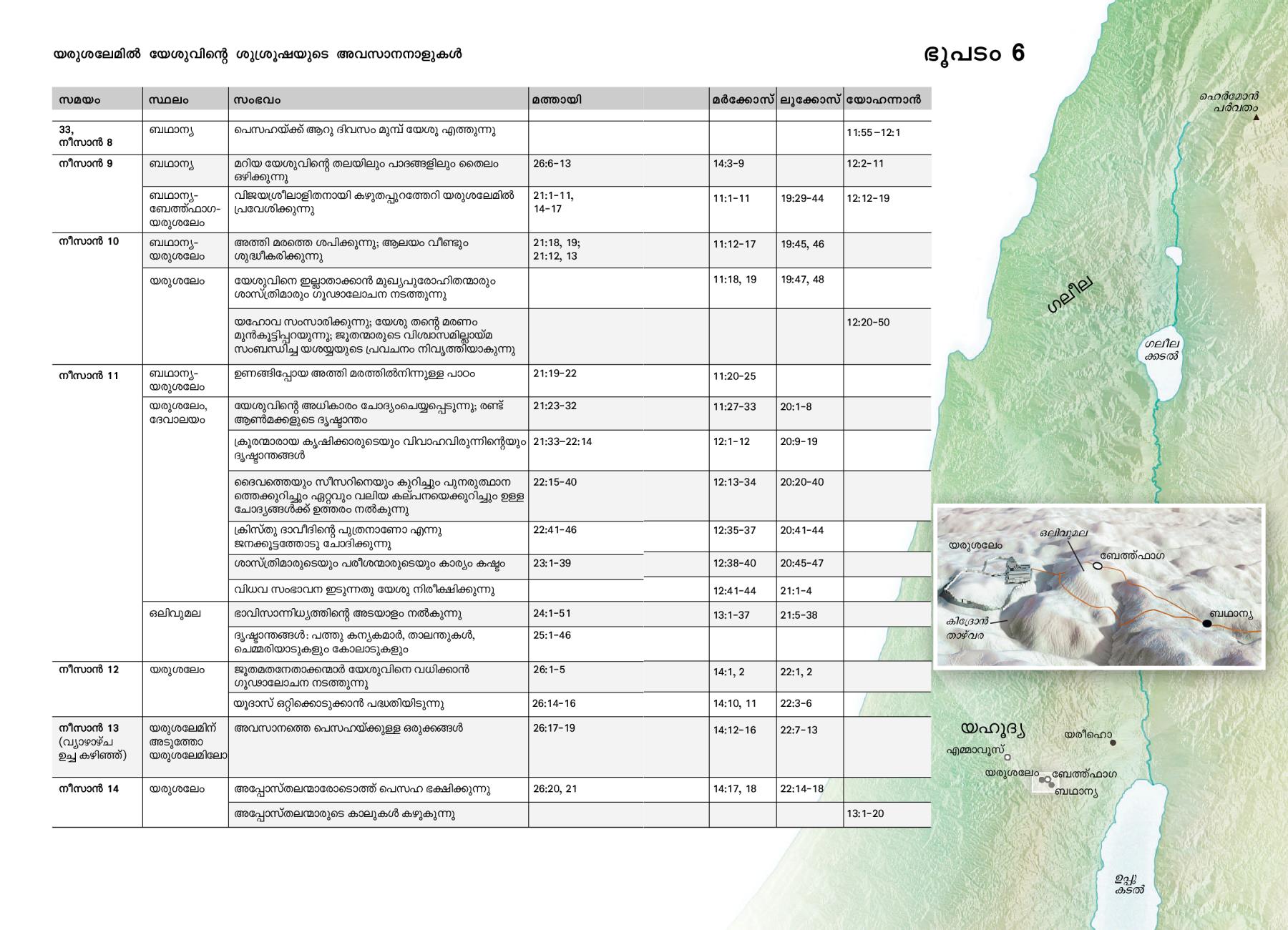 • എ7-ജി ഭൂമി​യി​ലാ​യി​രു​ന്ന​പ്പോൾ യേശു​വി​ന്റെ ജീവി​ത​ത്തിൽ നടന്ന പ്രധാ​ന​സം​ഭ​വങ്ങൾ—യരുശ​ലേ​മിൽ യേശു​വി​ന്റെ ശുശ്രൂ​ഷ​യു​ടെ അവസാ​ന​നാ​ളു​കൾ (ഭാഗം 1)