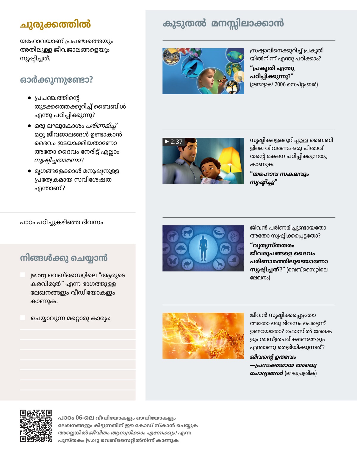 ജീവൻ ദൈവം സൃഷ്ടിച്ചതാണ് എന്നതിന് എന്ത് തെളിവുണ്ട്? സൃഷ്ടിയെക്കുറിച്ചുള്ള ബൈബിളിലെ വിവരണം വിശ്വസിക്കാൻ കഴിയുമോ? മനുഷ്യർക്കുള്ള നല്ല ഗുണങ്ങൾ കാണുമ്പോൾ ദൈവത്തെക്കുറിച്ച് കൂടുതലായി എന്തു മനസ്സിലാക്കാം? നമുക്കു നോക്കാം.