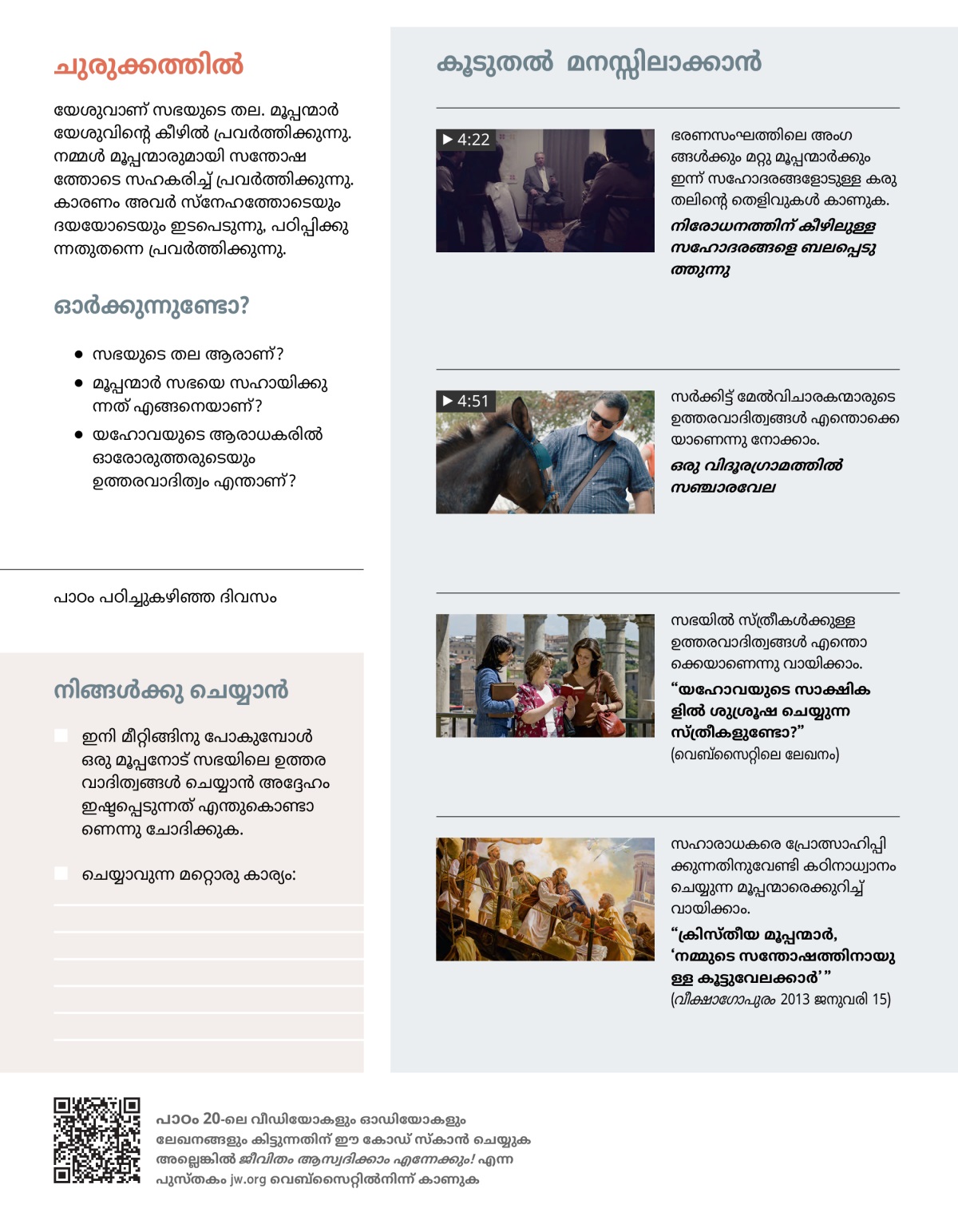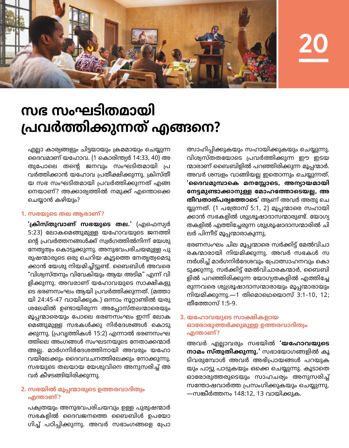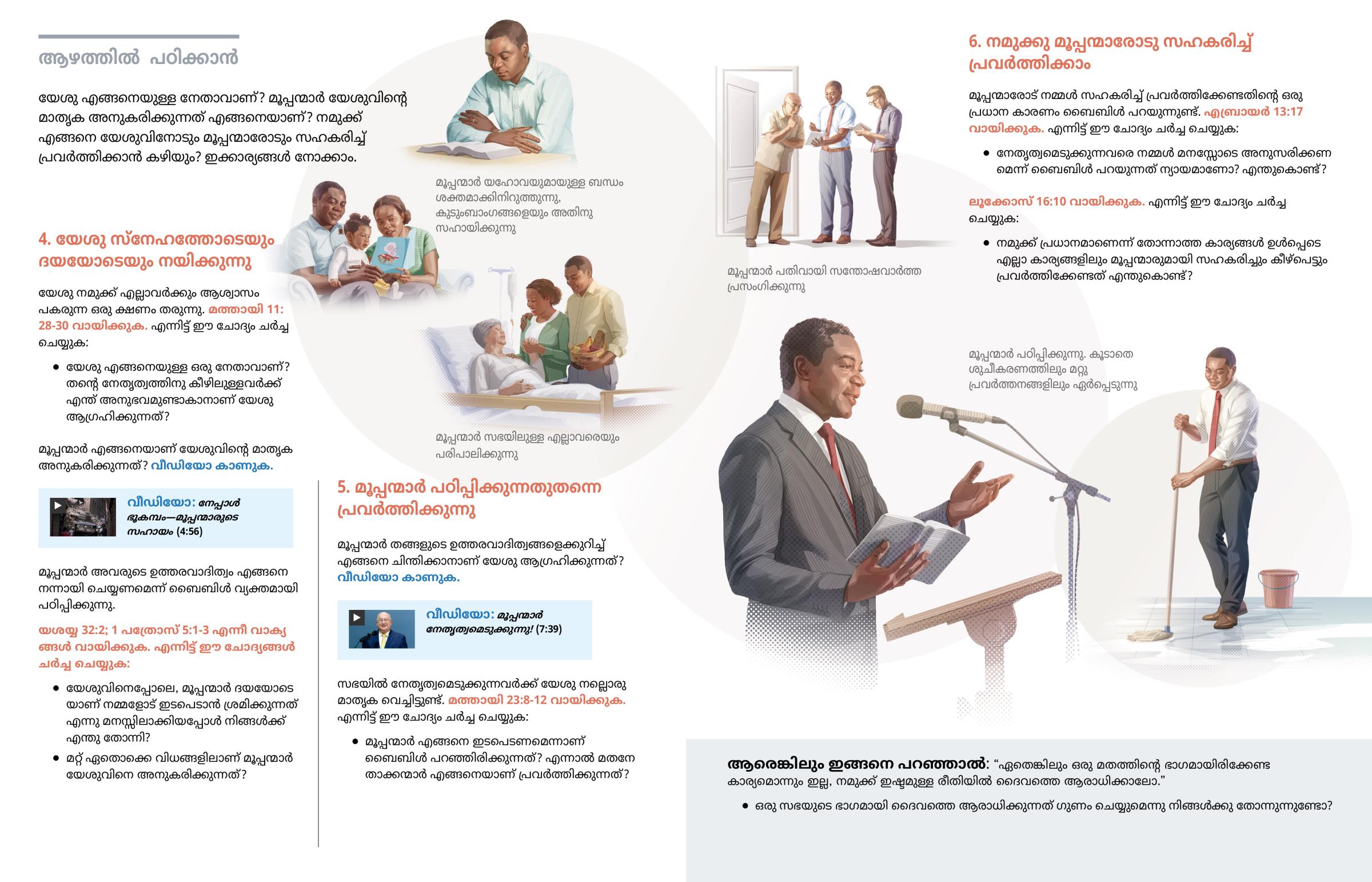 യേശു എങ്ങനെയുള്ള നേതാവാണ്? മൂപ്പന്മാർ യേശുവിന്റെ മാതൃക അനുകരിക്കുന്നത് എങ്ങനെയാണ്? നമുക്ക് എങ്ങനെ യേശുവിനോടും മൂപ്പന്മാരോടും സഹകരിച്ച് പ്രവർത്തിക്കാൻ കഴിയും? ഇക്കാര്യങ്ങൾ നോക്കാം.