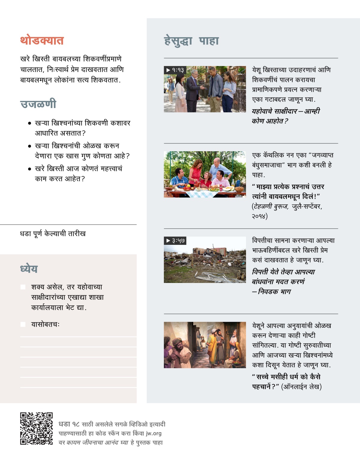 खऱ्या ख्रिश्चनांनी खरोखरच आपल्या भाऊबहिणींसाठी जीव धोक्यात घातलाय का? व्हिडिओ पाहा, आणि मग खाली दिलेल्या प्रश्नांवर चर्चा करा.