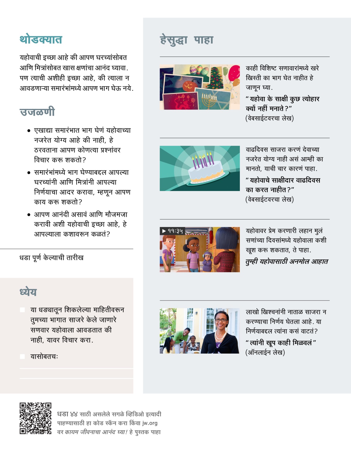 “यहोवा के साक्षी कुछ त्योहार क्यों नहीं मनाते?” (वेबसाईटवरचा लेख)
