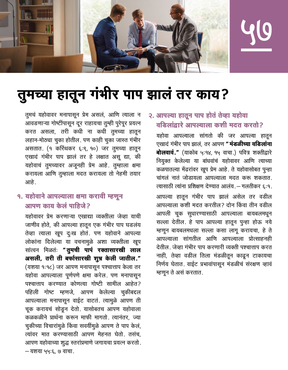 आपण गंभीर पाप केलं असेल, तर आपण मंडळीतल्या वडिलांची मदत का घेतली पाहिजे?
