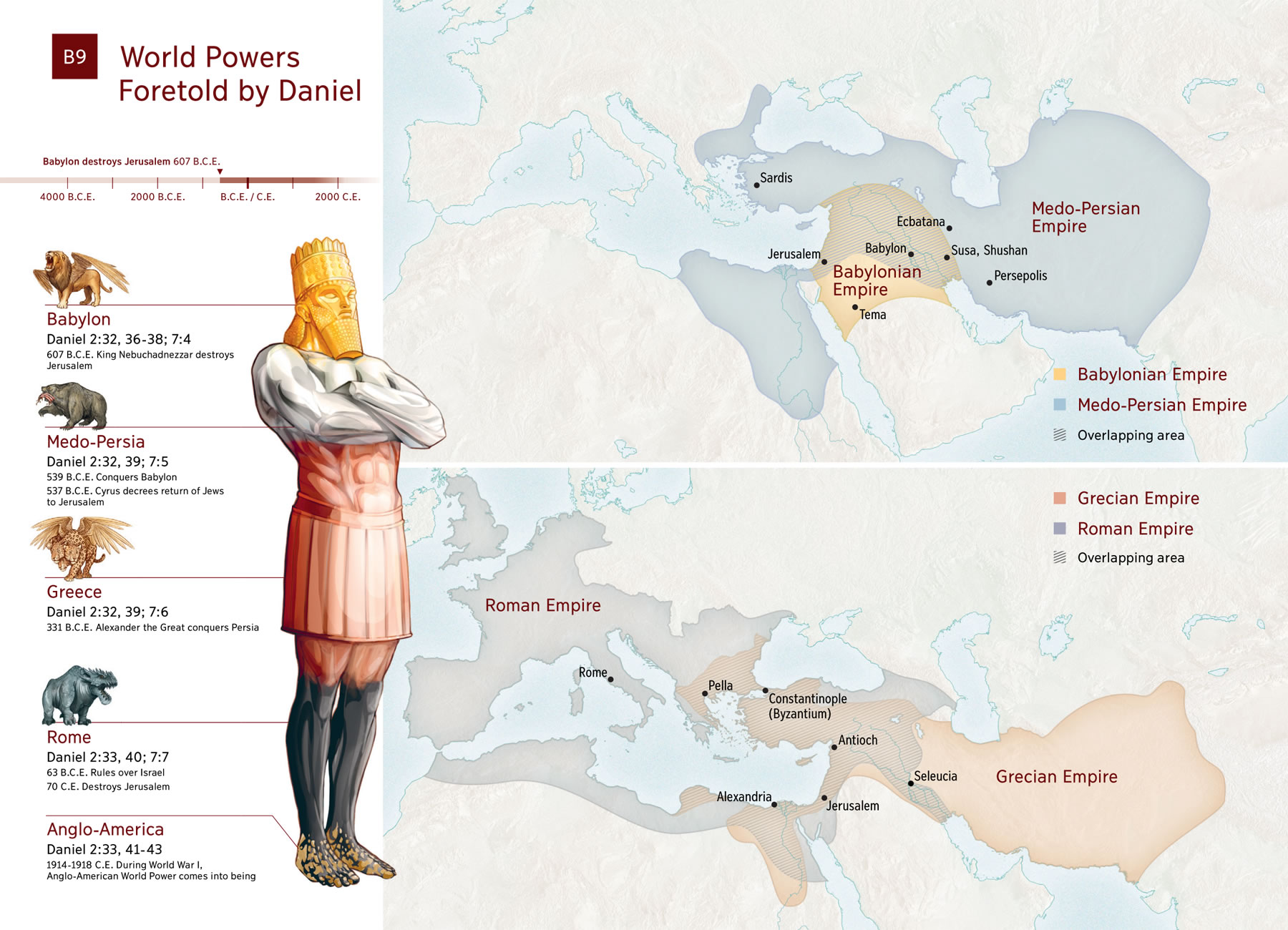 Babylon Daniel 2:32, 36-38; 7:4 607 B.C.E. King Nebuchadnezzar destroys Jerusalem |